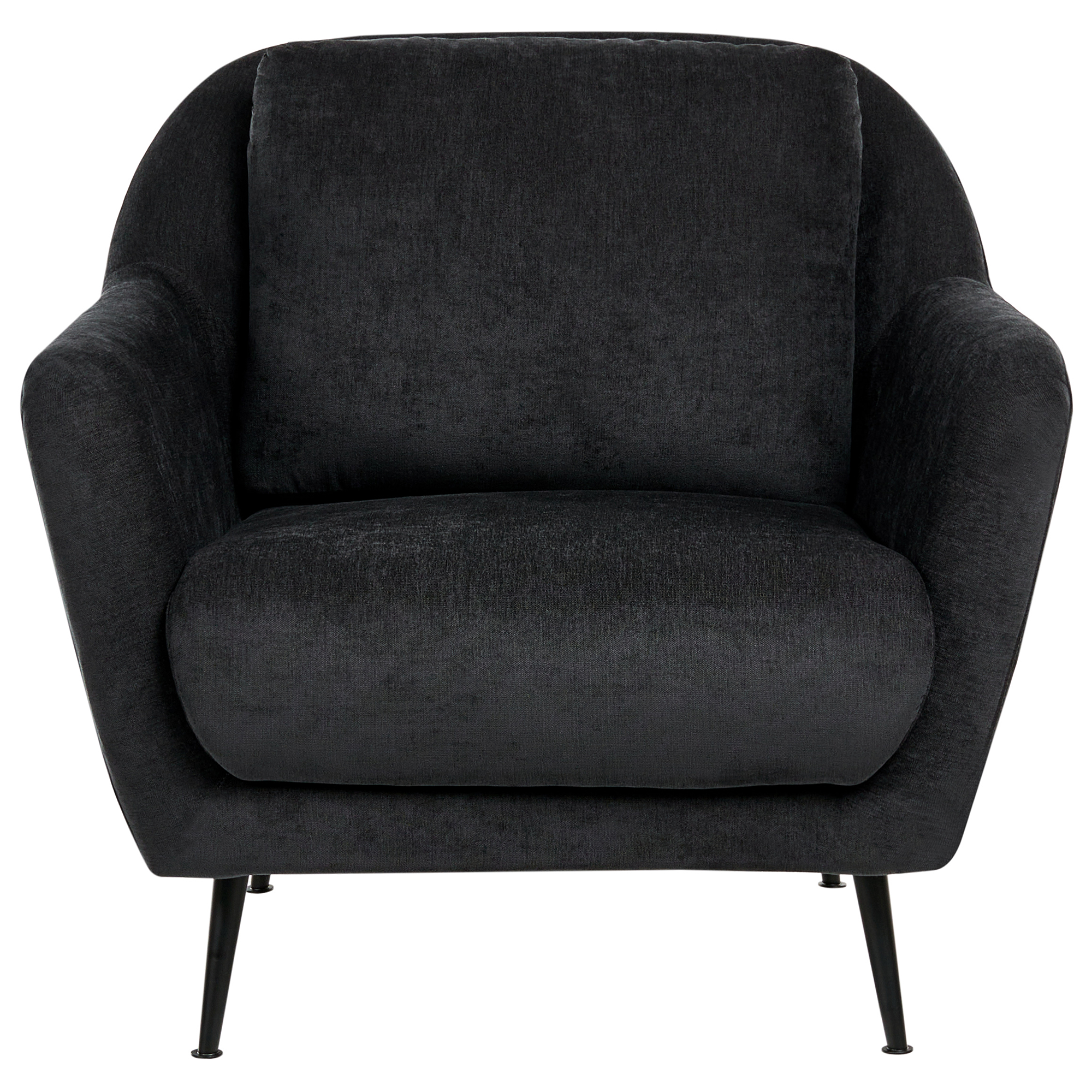 Moderni pehmustettu lepotuoli. Tämä tyylikäs nojatuoli on täydellinen lisä moderniin sisustukseen. Se on verhoiltu pehmeällä, helppohoitoisella chenillekankaalla, ja tuettu klassisen mustilla rautajaloilla, jotka takaavat kestävyyden sekä tyylikkään ulkonäön. Mukavat käsinojat ja paksusti pehmustettu istuin lisäävät rentoutumista, kun taas jalkatapit suojaavat lattiaa naarmuilta.