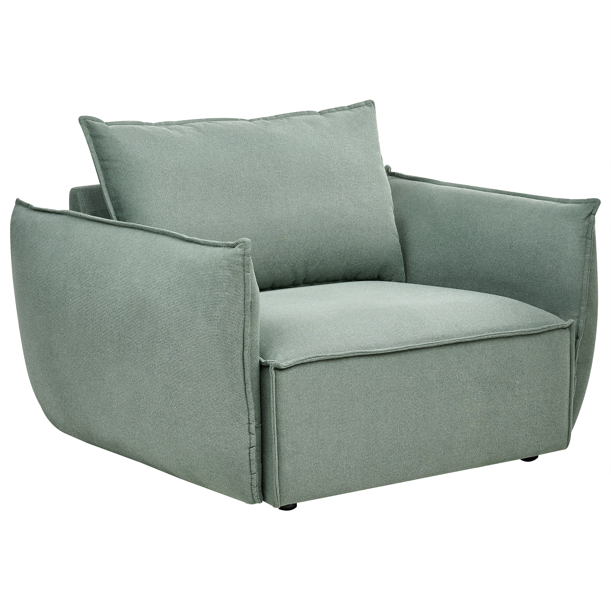 Moderni pehmustettu nojatuoli. Tämä reilun kokoinen nojatuoli on suunniteltu puhdasta rentoutumista varten. Sen matala, syvä ja leveä istuin sekä paksusti pehmustetut käsinojat tarjoavat mukavan ja tukevan tuntuman. Pehmeät, sulavat kaaret ja houkuttelevan muhkeat tyynyt tuovat viihtyisyyttä sekä leppoisaa charmia mihin tahansa asuintilaan.