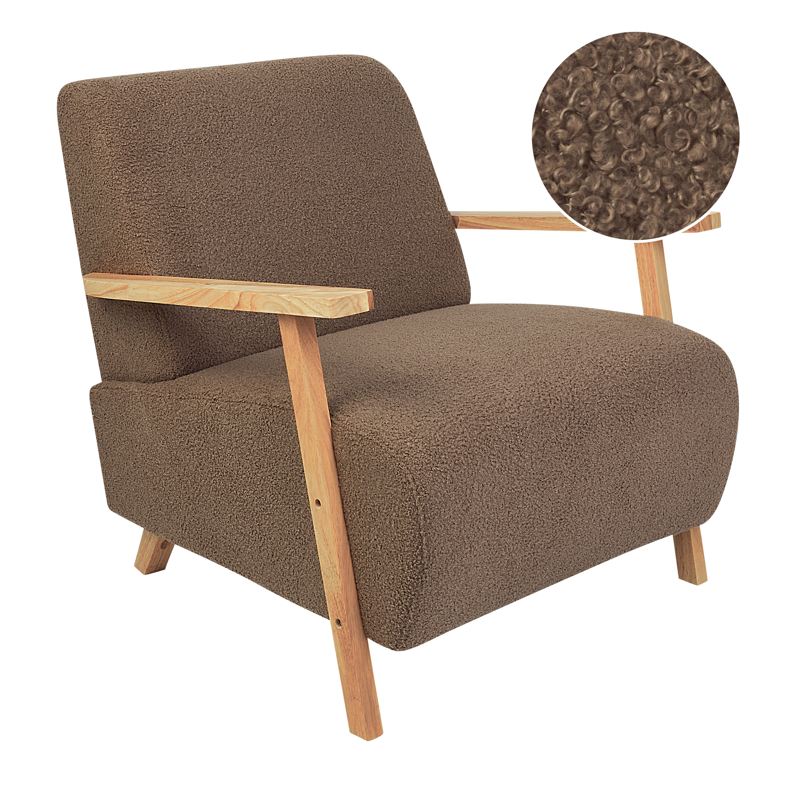 Retrotyylinen käsinojallinen tuoli. Rentoudu tässä nojatuolissa, jonka mukava, pehmustettu istuin on verhoiltu pehmeällä ja kestävällä bukleekankaalla. Käsinojat ja jalat on valmistettu eukalyptuspuusta, joka antaa tuolille lämpimän ja kodikkaan ilmeen. Mukavuutta lisäävät kevyesti kaltevat käsinojat, kun taas tukevat jalat antavat erinomaisen vakauden ja tuen. Nojatuoli yhdistää toiminnallisen muotoilun klassiseen ja yksinkertaiseen estetiikkaan, sopien erinomaisesti osaksi olohuonetta tai makuuhuonetta.