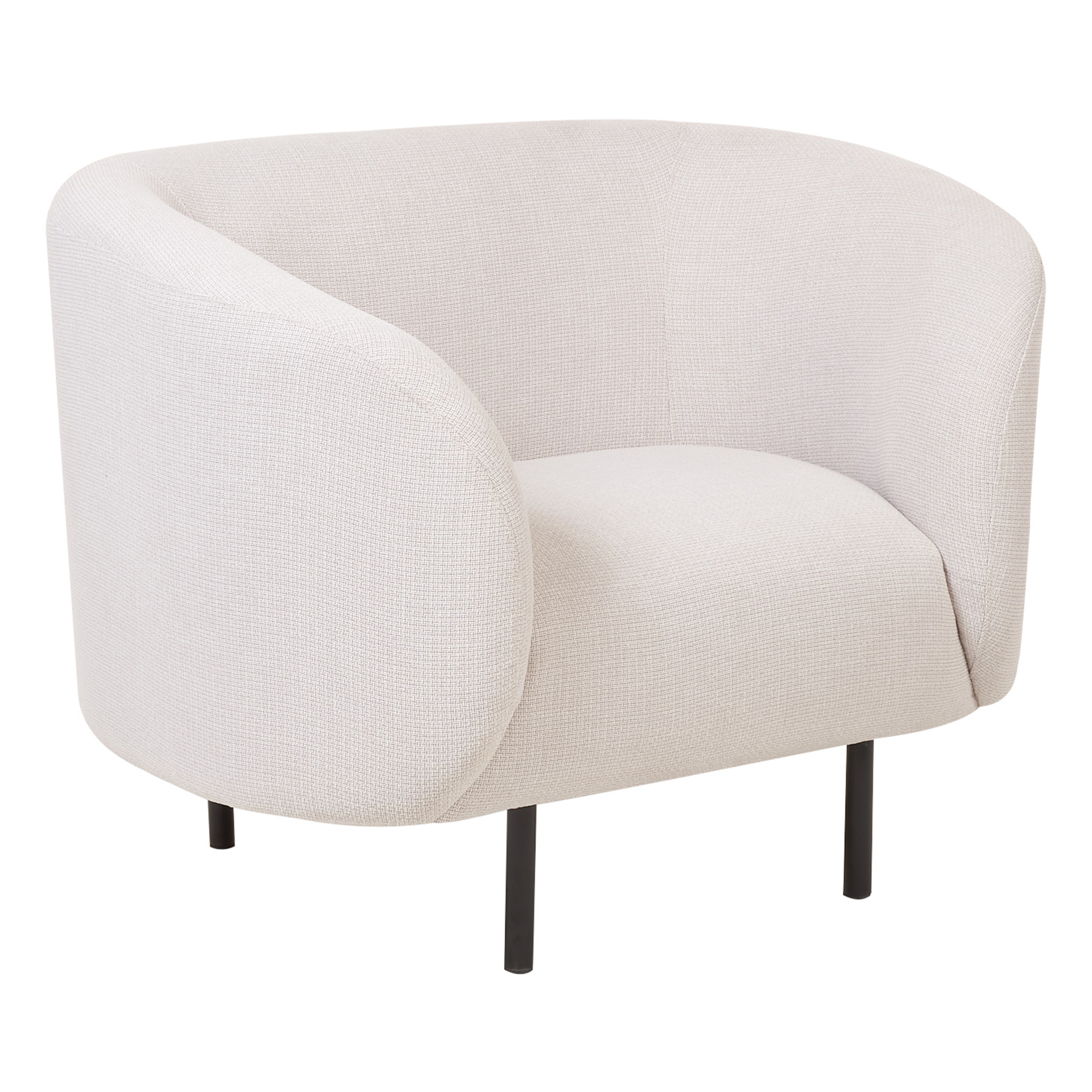 Klassinen art deco nojatuoli. Tämä kaunis nojatuoli huokuu ylellisyyttä. Sen mustat rautajalat korostavat beigeä istuinta upeasti. Polyesterikangasverhoilu tekee tuolista pehmeän ja miellyttävän tuntuisen, luoden samalla sekä kotoisan että kutsuvan tunnelman mihin tahansa tilaan. Paksusti pehmustettu istuin tarjoaa istumamukavuuden, joten lepotuoli on täydellinen paikka sekä lukemiseen että television katseluun. Sen pehmeästi kaartuva, koristeellinen muotoilu täydentää erinomaisesti etenkin eklektisiä, perinteisiä tai vuosisadan puolivälin tyylisiä sisustuksia.