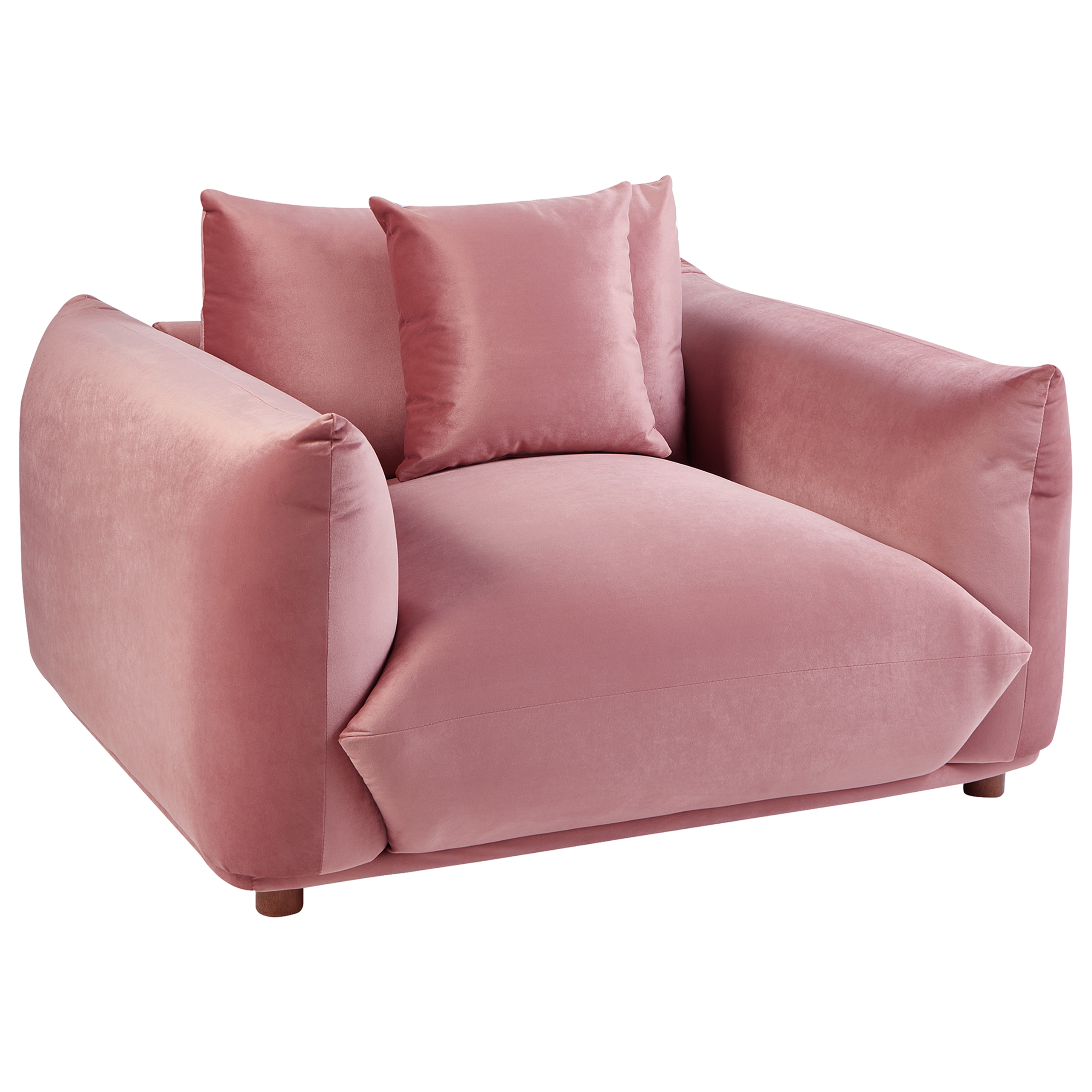 Moderni muhkea nojatuoli koristetyynyllä. Kohota olohuoneesi sisustusta ja lisää siihen täydellinen yhdistelmä modernia tyyliä ja mukavuutta tällä matalalla nojatuolilla. Kestävällä ja pehmeällä samettikankaalla verhoiltu tuoli huokuu eleganssia hempeällä vaaleanpunaisella värillään, ja muhkean pehmustuksen ansiosta se tarjoaa miellyttävän paikan rentoutumiseen. Lyhyet, tukevat kumipuujalat takaavat vakauden ja korostavat syvää, leveää istuinta. Yhteensopiva koristetyyny parantaa nojatuolin ulkonäköä ja takaa ylellisen istumiskokemuksen.