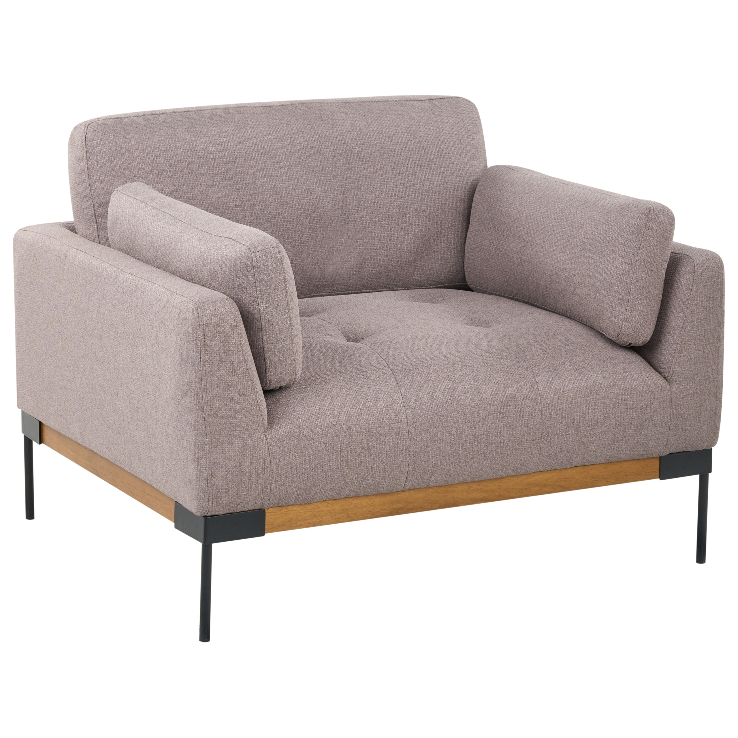 Moderni tuftattu lepotuoli tyynyillä. Nauti mukavuudesta tällä modernilla nojatuolilla, jossa on kaksi sivutyynyä. Muhkea istuintyyny tarjoaa miellyttävän istumakokemuksen, ja helposti puhdistettava polyesterikangasverhoilu takaa nopean sekä vaivattoman puhdistuksen. Pehmeässä selkätyynyssä on vetoketjullinen päällinen helppoa ylläpitoa varten, kun taas tyylikkäät mustat rautajalat lisäävät ripauksen eleganssia mihin tahansa huoneeseen. Tämä nojatuoli on sekä tyylikäs että käytännöllinen, ja sopii täydellisesti rentoutumiseen tai vieraiden viihdyttämiseen.