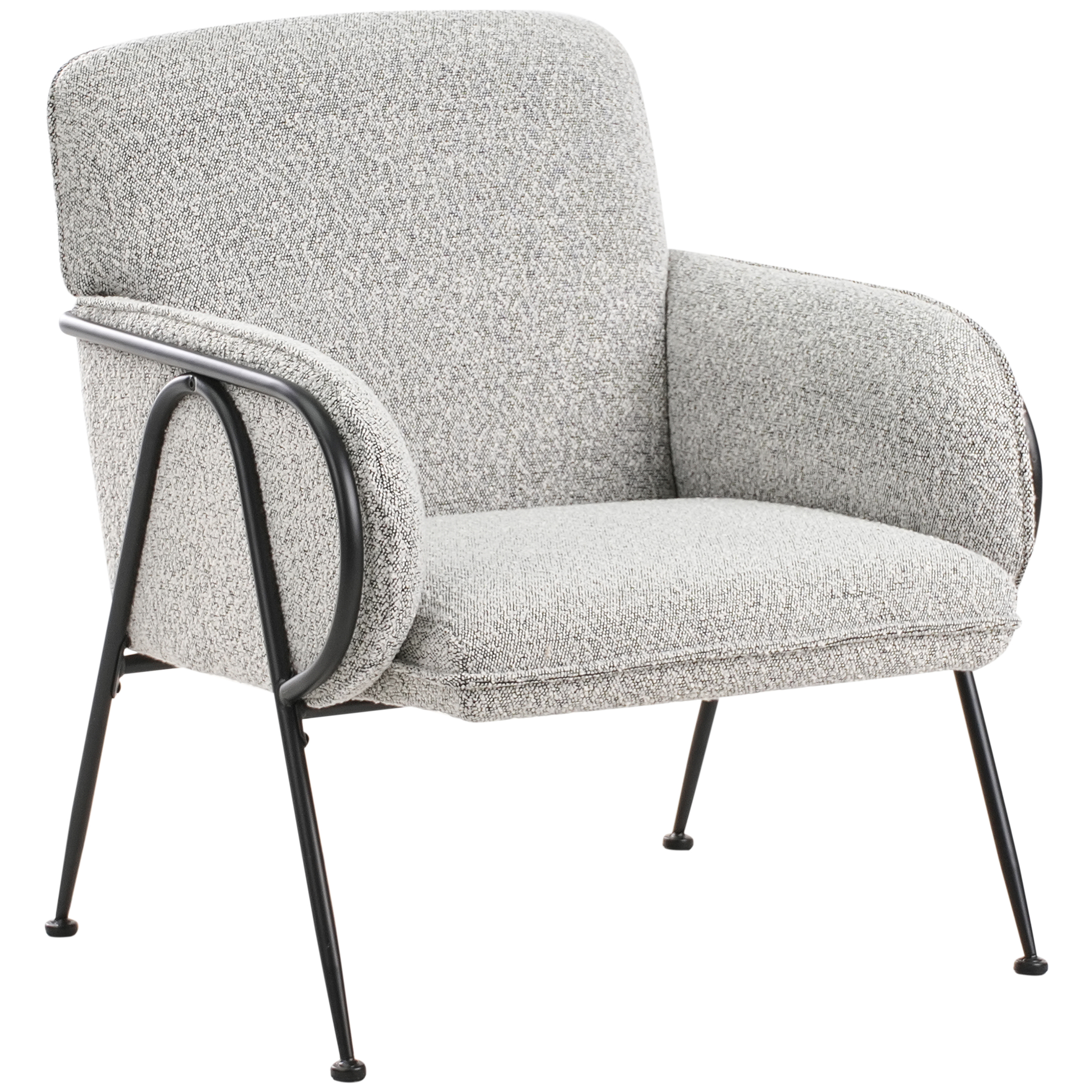 Retrotyylinen lepotuoli metallirungolla. Tämä vuosisadan puolivälin moderni nojatuoli on tyylikäs yhdistelmä mukavuutta ja luonnetta. Kevyesti pyöristetyt linjat ja pehmeä, teksturoitu kangas tuntuvat sekä rennoilta että hienostuneilta. Erottuva metallirunko kaartuu käsinojien ympärille ja ulottuu näkyvästi selkänojaan, yhdistäen rakneteellisen tuen visuaalisesti kevyeen ja avoimeen muotoiluun. Sirot jalat lisäävät vakautta ja heijastavat retrotyylille tyypillisiä puhtaita kulmikkaita linjoja. Tämä nojatuoli on täydellinen lisä mihin tahansa olohuoneeseen tai ruokailutilaan.
