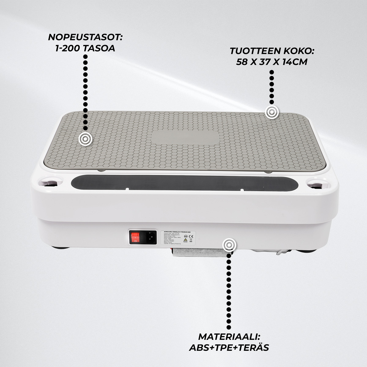 <p>Nordcore Tärinälevy Premium 4000 on suunniteltu yhdistämään suorituskyky, käyttömukavuus ja älykkäät ominaisuudet yhteen kokonaisuuteen. 200 W moottori tuottaa tasaisen värähtelyn ja 200 säätötasoa antavat mahdollisuuden säätää intensiteettiä tarkasti – olipa tavoitteena kevyt aktivointi, liikkuvuus, palautuminen tai napakampi harjoitus.</p>