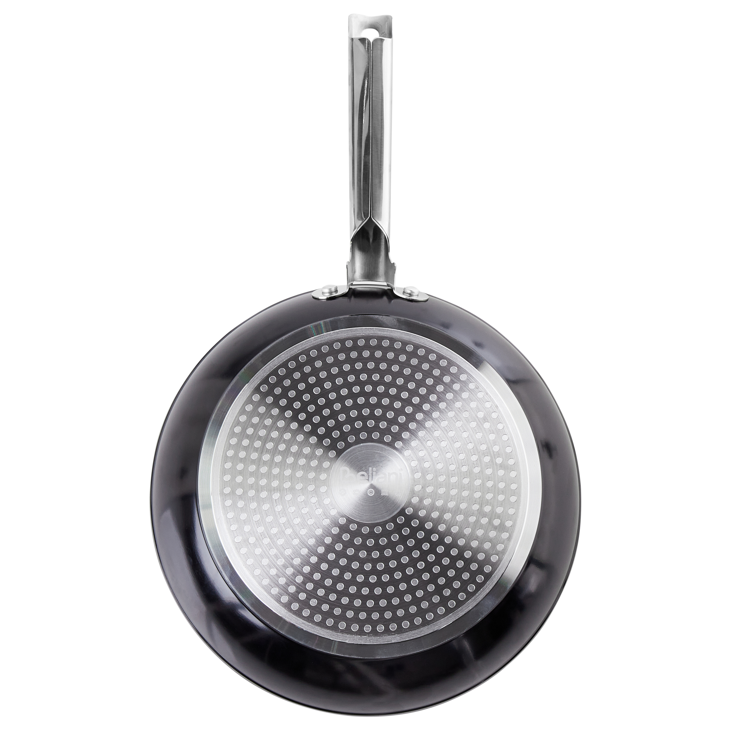 Kolmen paistinpannun setti tarttumattomilla pinnoilla. Tuo keittiöön nykyaikaista eleganssia tällä klassisen mustalla kolmen paistinpannun setillä, jonka kahvat ovat tyylikkään hopeanväriset. Ne on valmistettu kevyestä ja kestävästä alumiinista, mikä takaa nopean ja tasaisen lämmön jakautumisen. Tarttumaton keraaminen ILAG®-pinnoite tarjoaa terveellisen keittopinnan, kestää tahroja ja naarmuja, on helppo puhdistaa sekä vapaa haitallisista kemikaaleista, kuten PFAS- ja PTFE-yhdisteistä. Pannut sopivat kaikille liesityypeille, myös induktiolle, ja ovat täysin uuninkestäviä, joten ruoka voidaan valmistaa ja paistaa samassa astiassa vaivattomasti. Mukavat ruostumattomat teräskahvat varmistavat tukevan otteen. Pannut ovat myös konepestäviä, mikä lisää käyttömukavuutta. Setti tarjoaa laadukkaat ja luotettavat välineet ruoanlaittoon, jotka toimivat joka kerta.