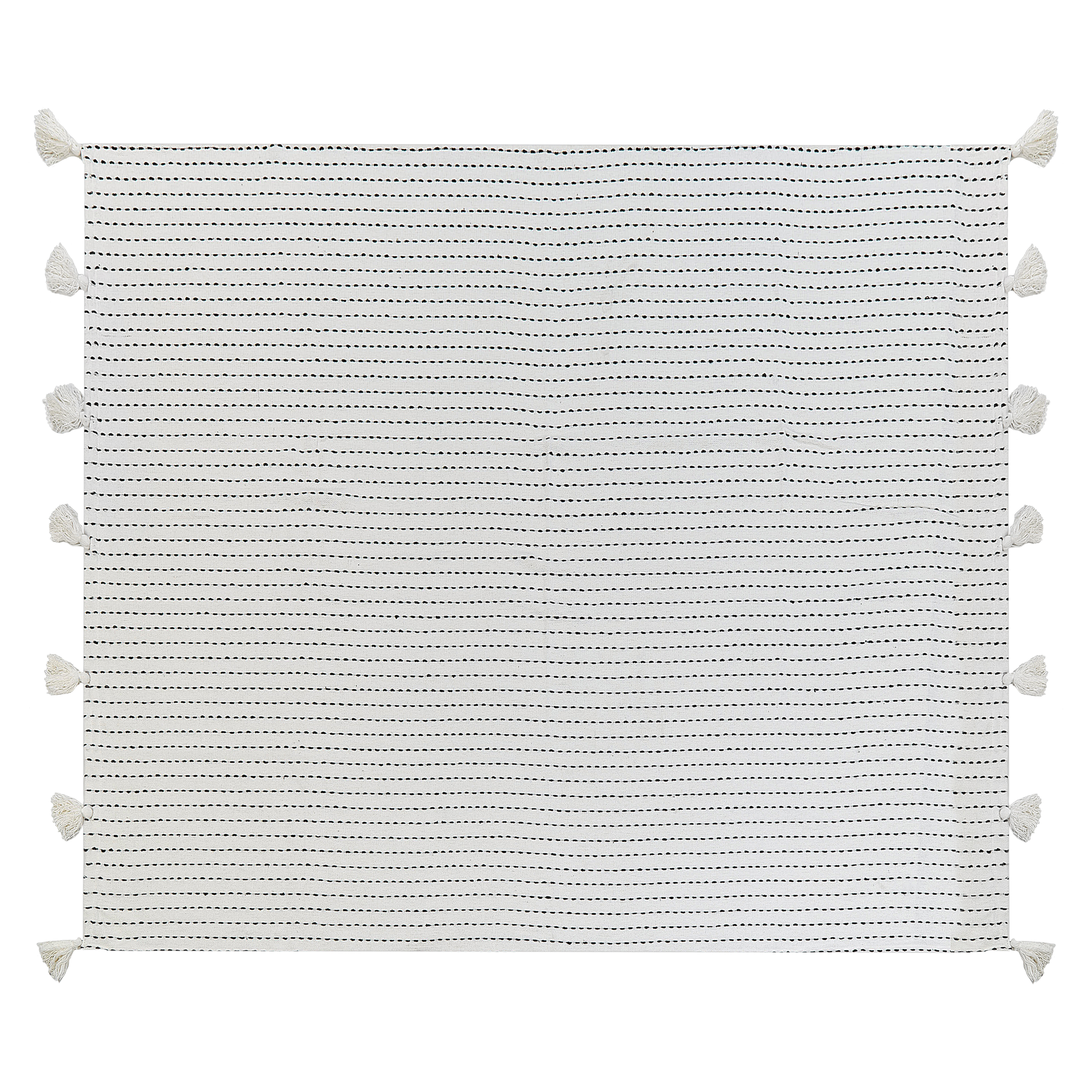 Moderni raidallinen päiväpeite tupsuilla. Tämä ihastuttava ja tyylikäs päiväpeitto on täydellinen lisä kaikkiin nykyaikaisiin makuuhuoneisiin. Puuvillasta valmistettu peitto on pehmeän tuntuinen ja kestävä. Päiväpeitteen sivut on koristeltu tupsuilla, joita täydentävät hienovaraiset mustat raidat. Koska se on konepestävä, se ei vaadi ylimääräistä ylläpitoa säilyäkseen kunnossa useita vuosia.