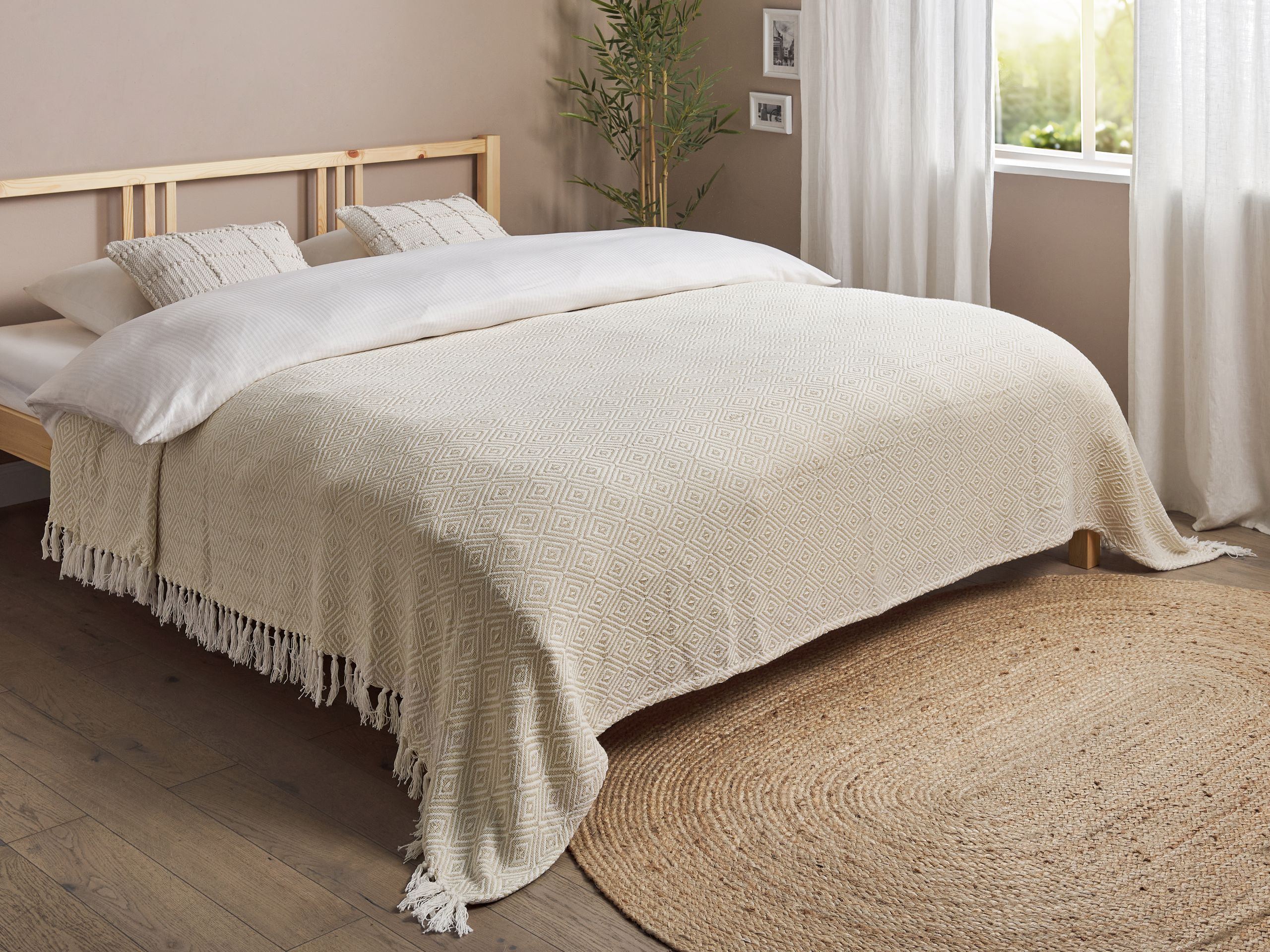 Päiväpeitto TOUTLI puuvilla 220 x 240 cm Vaaleanbeige