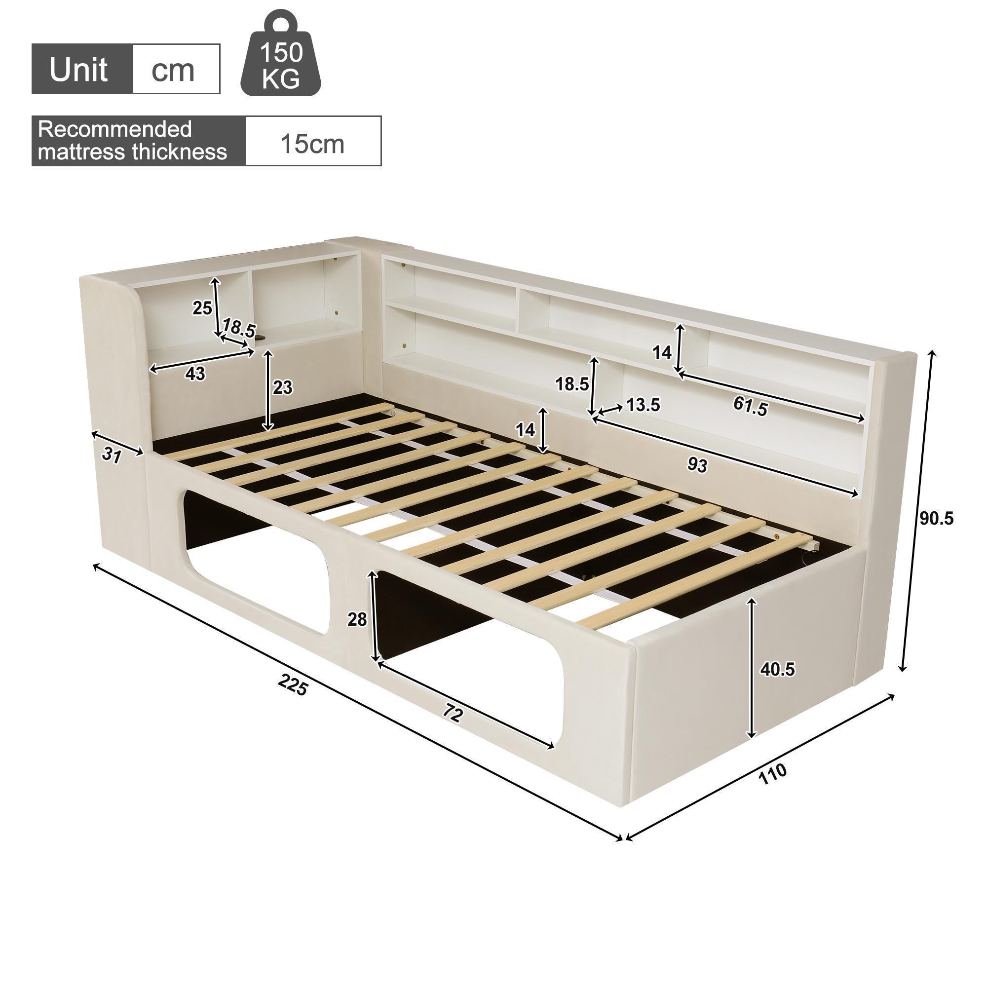 Päivävuode 90x200 cm, jossa superiso eläinluola, beige sametti