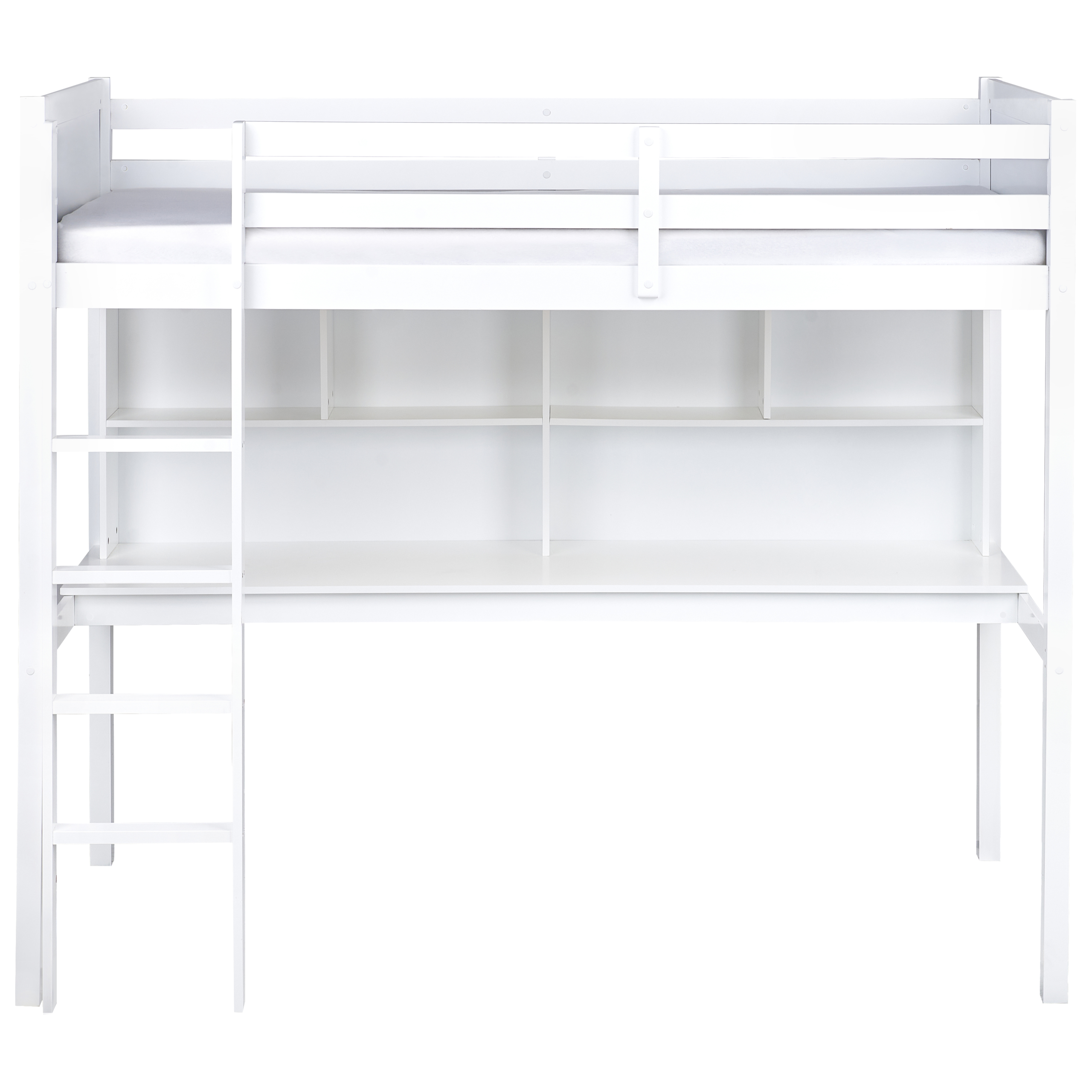 Skandinaavinen lasten parvisänky pöydällä ja hyllyillä. Luo lapsellesi monipuolinen tila tämän nykyaikaisen parvisängyn avulla. Sängyn alle sijoittuvat työpöytä ja hyllyt sopivat erinomaisesti opiskeluun sekä koulutarvikkeiden, kirjojen ja muiden tarpeellisten esineiden säilyttämiseen. Se on valmistettu kokonaan laadukkaasta männystä, joka tarjoaa kestävyyttä ja vakautta. Lisäksi mukana tuleva sälepohja takaa levolliset yöunet.