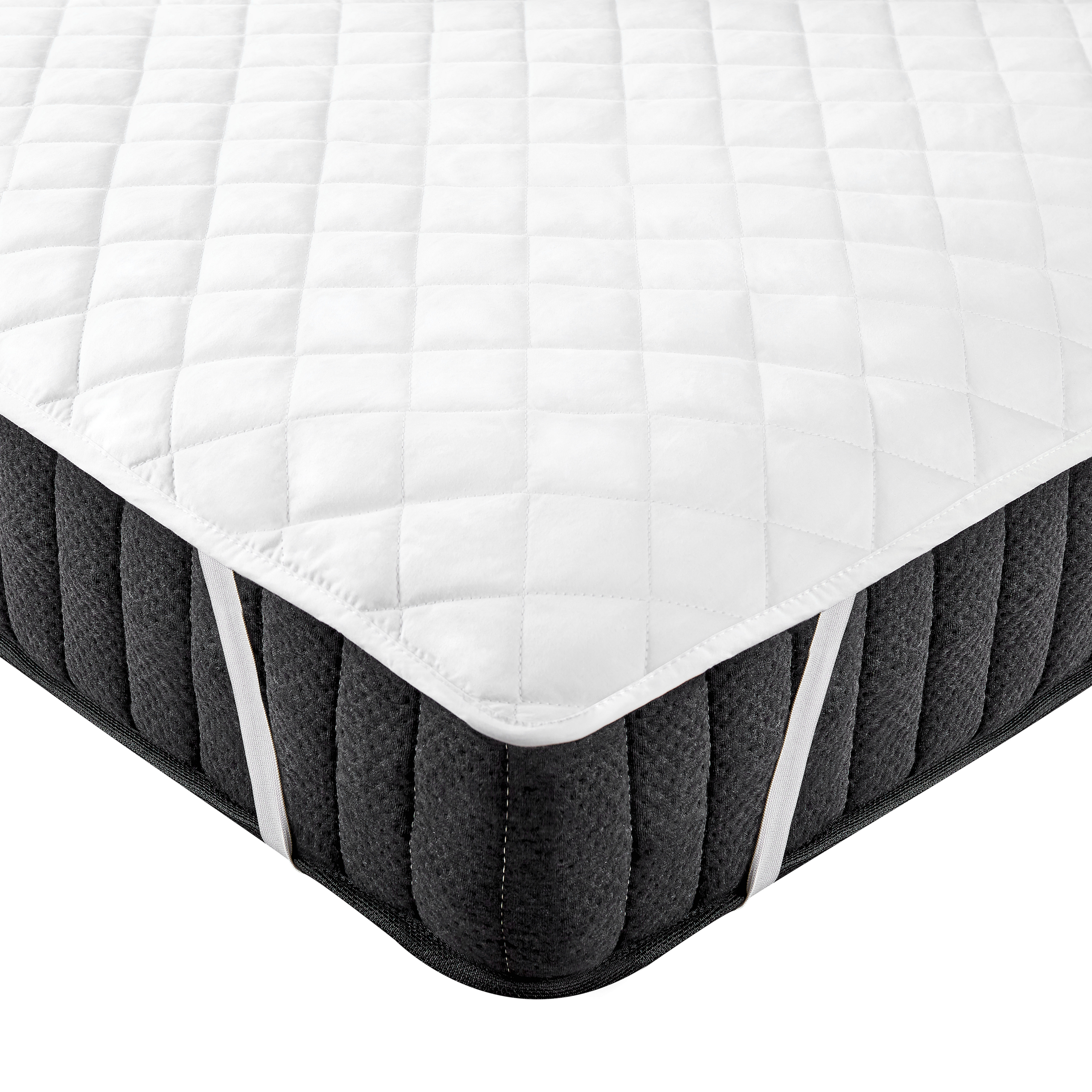 Pehmeä patjansuoja kumilenkeillä. Suojaa patjaa ja kohota mukavuutta tällä tikatulla patjansuojuksella. Etuosa on valmistettu hengittävästä japara-puuvillasta, kun taas takaosa on kestävää mikrokuitua. Pehmeä polyesteritäyte antaa lisäpehmustusta, ja kulmissa sijaitsevat joustavat kuminauhat pitävät patjansuojan paikallaan. Se on helppohoitoinen, konepestävä ja vimeistelty timantinmuotoisella tikkauksella yhdistettynä koristeelliseen tereen, jotka luovat siistin ja jäsennellyn ilmeen.