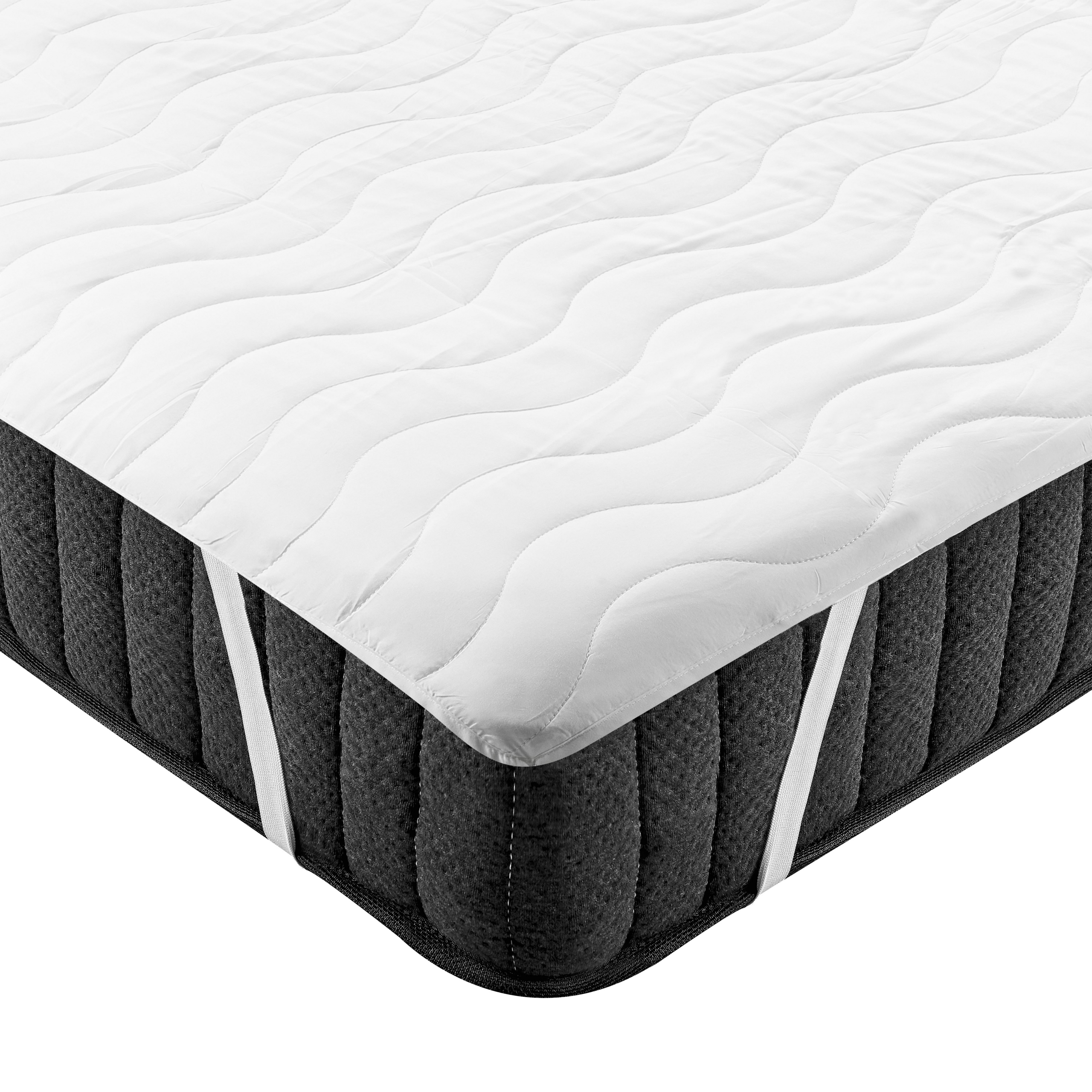 Ominaisuudet: Joustavat reunat sopivuuden takaamiseksi, Läpäisevät materiaalit mahdollistavat ilmankierron, Vedenpitävä korkeatasoisten materiaalien ansiosta, Oeko-Tex®-standardi 100 sertifioitu, Voidaan pestä pesukoneessa