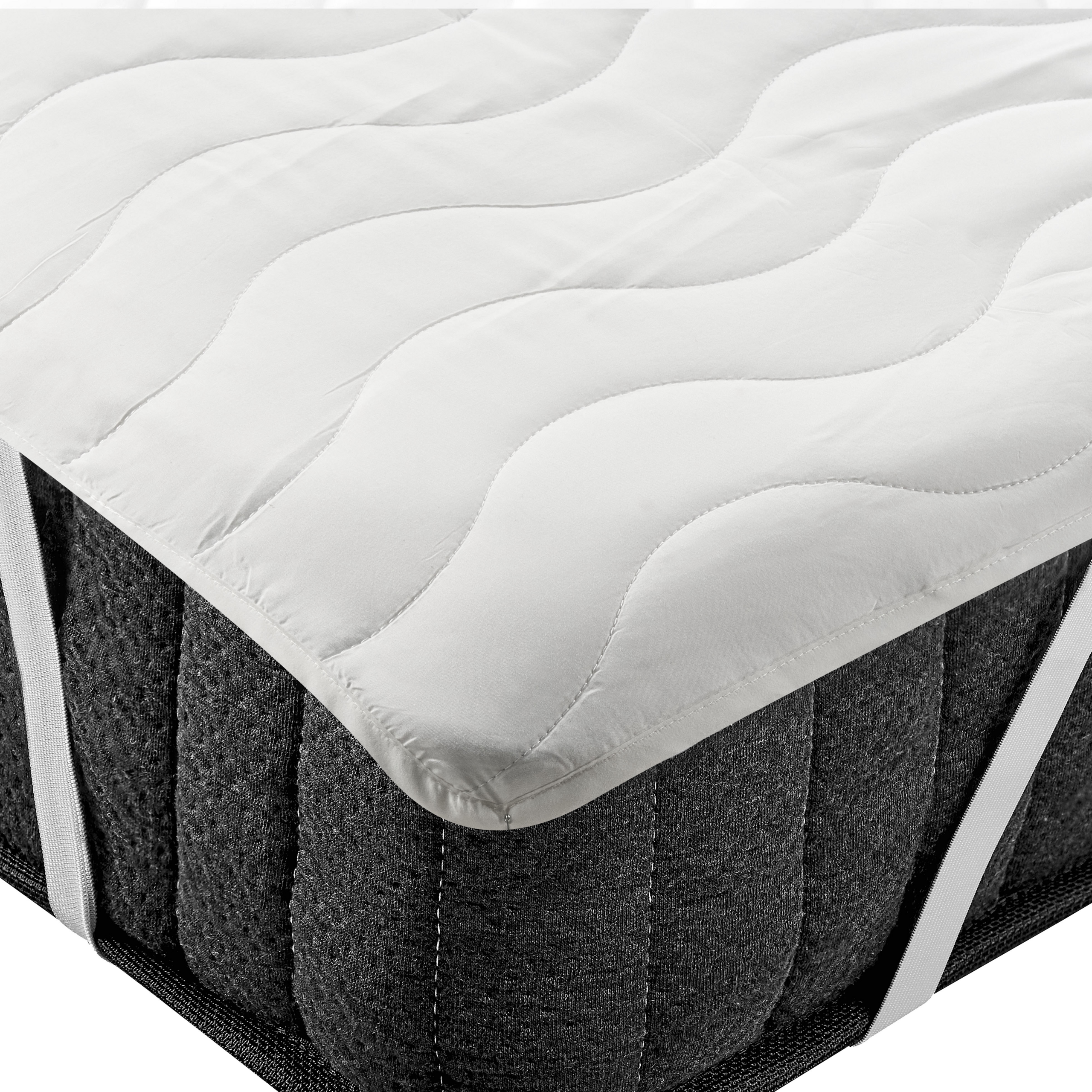 Ominaisuudet: Joustavat reunat sopivuuden takaamiseksi, Läpäisevät materiaalit mahdollistavat ilmankierron, Vedenpitävä korkeatasoisten materiaalien ansiosta, Oeko-Tex®-standardi 100 sertifioitu, Voidaan pestä pesukoneessa