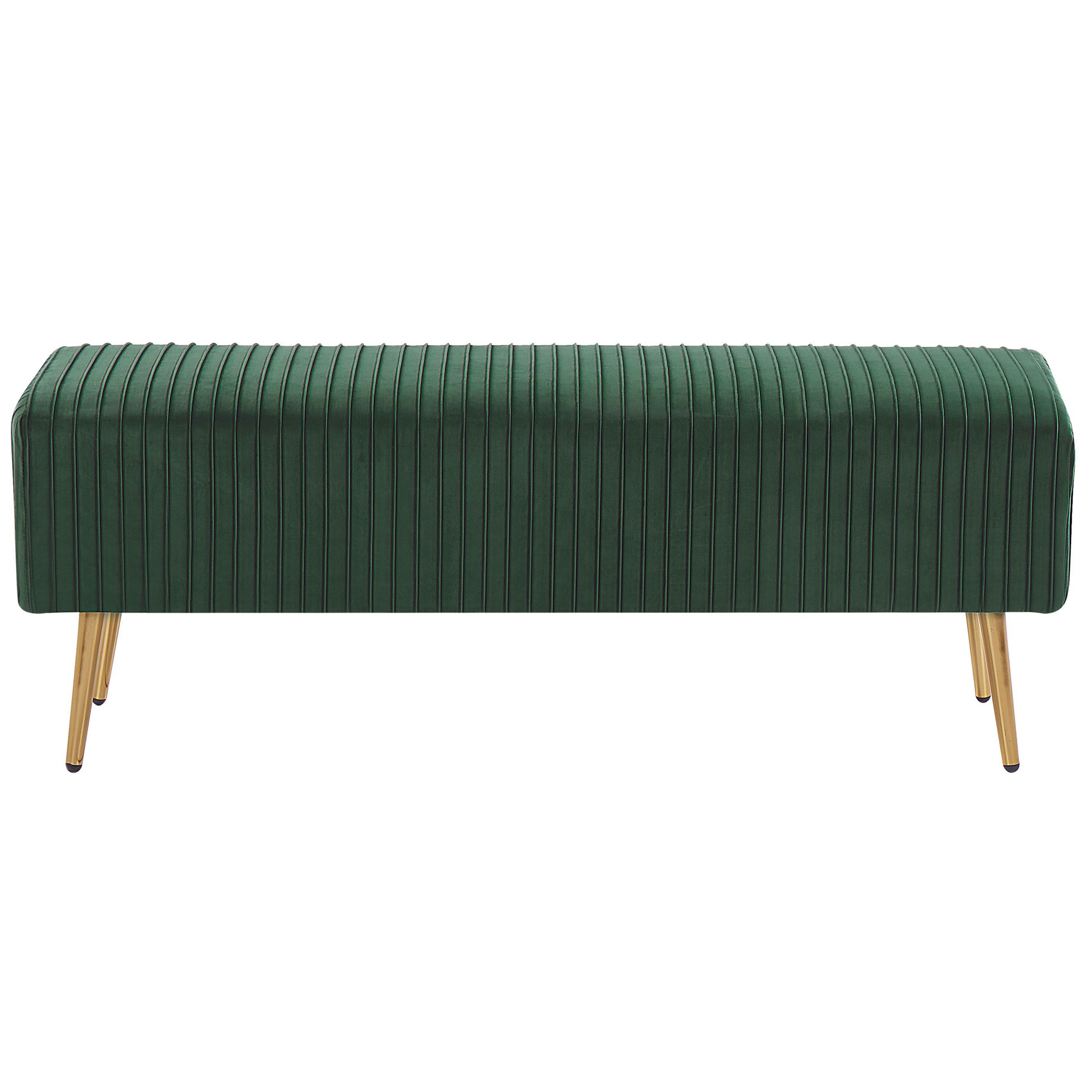Glamour-tyylinen sängynpäätypenkki. Käytännöllinen ja tyylikäs penkki tuo ripauksen glamouria sisustukseen kuin sisustukseen. Vankka runko on verhoiltu trendikkään värisellä sametilla, jonka pystysuora tikkaus korostaa kullanvärisiä rautajalkoja kauniisti. Penkki sopii loistavasti eteiseen, makuuhuoneeseen tai olohuoneeseen, jossa se tarjoaa mukavan istumapaikan. Elegantti muotoilu saa penkin näyttämään erityisen hyvältä sekä glamour- että retrotyylisissä sisustuksissa.