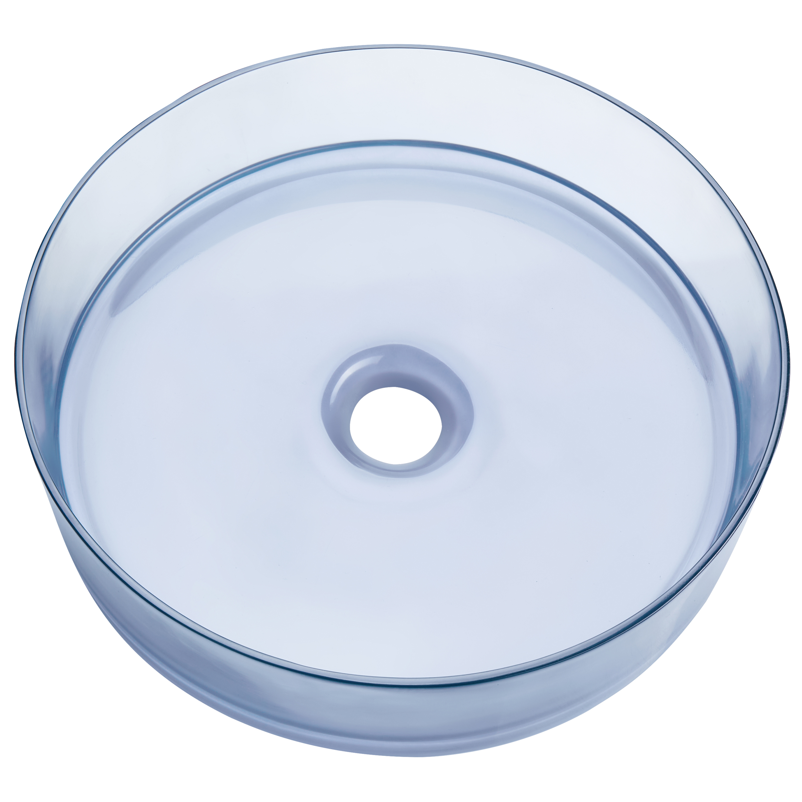 Läpinäkyvä pyöreä allas. Tämä hienostunut, osittain läpinäkyvä pyöreä pesuallas tuo kylpyhuoneeseen modernia eleganssia. Massiivimuovista, keinotekoisesta komposiittimateriaalista, valmistetun altaan tyylikäs muotoilu ja hienovarainen väri antavat ripauksen nykyaikaista viehätysvoimaa, joka kohottaa minkä tahansa kylpyhuoneen estetiikkaa. Se lisää myös tilavuuden ja ilmavuuden tunnetta kylpyhuoneen kaapeille. Mukana tuleva napsautettava pohjaventtiili mahdollistaa vaivattoman vedenpoiston sekä helpon puhdistuksen ja ylläpidon.