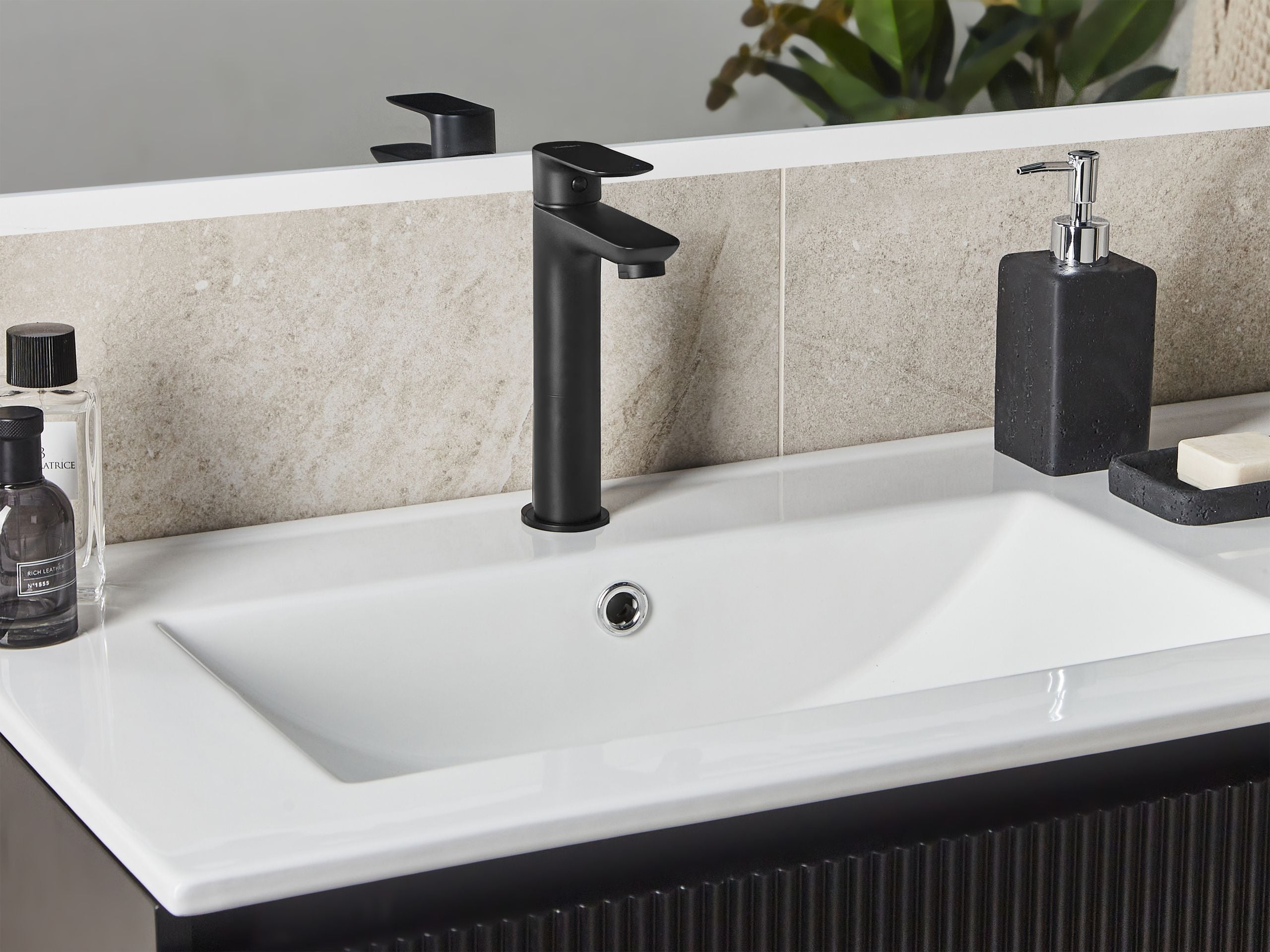 Tyylikäs mattapintainen yksivipuinen hana. Tämä tyylikäs lavuaarin hana yhdistää modernin muotoilun ja toiminnallisuuden. Laadukkaasta messingistä valmistettu hana on viimeistelty mattapinnoitteella, joka antaa sille hiotun ilmeen ja täydentää mitä tahansa kylpyhuonetta. Sen minimalistinen tyyli yhdistettynä sulavaan, käyttäjäystävälliseen vipuun mahdollistaa tarkan ja kätevän vedenpaineen sekä lämpötilan säädön.