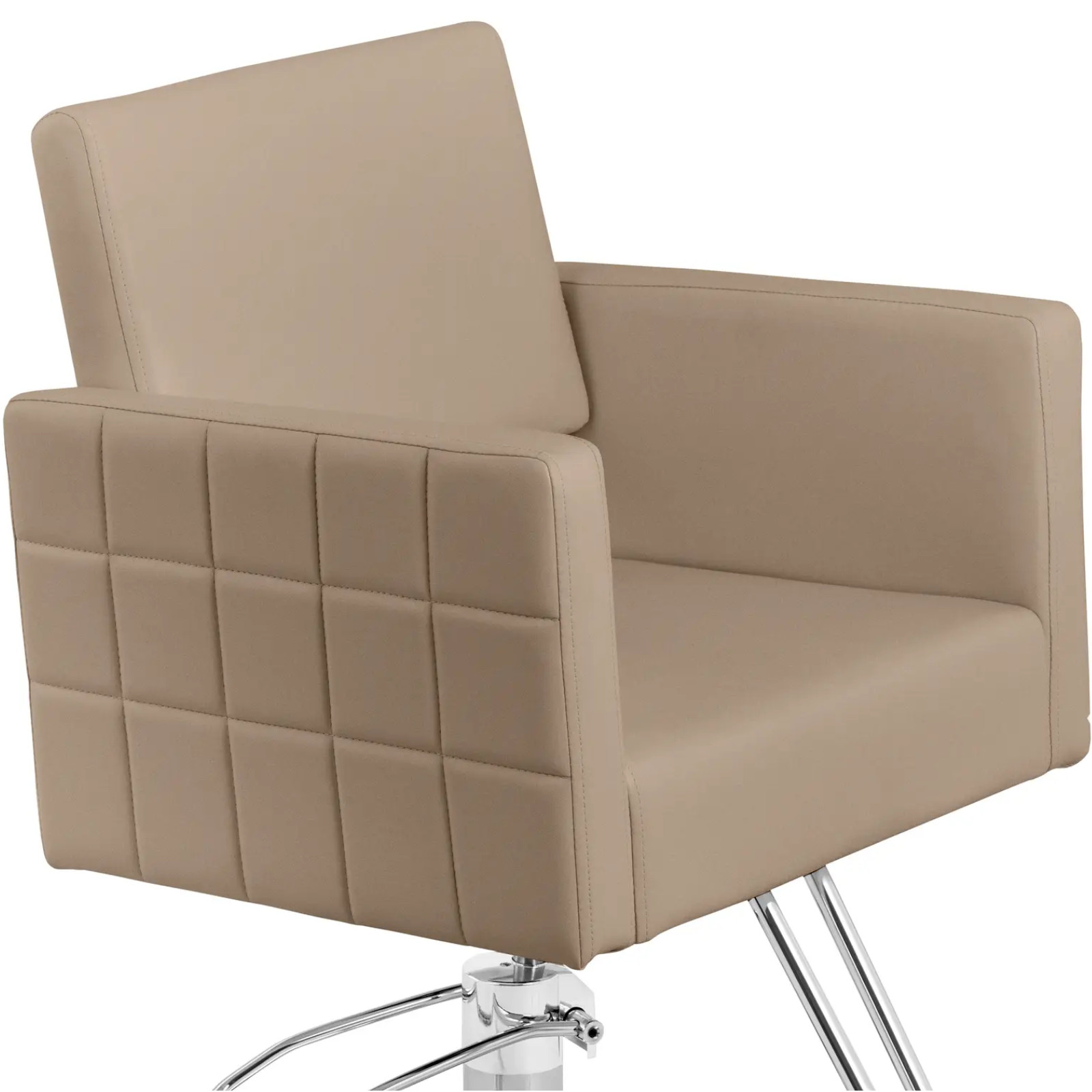 Physa nojatuoli tuo tyyliä mihin tahansa kampaamoon. Sen hienovarainen beigenvärinen muotoilu sopii mihin tahansa sisustukseen. Tuoli on mukava ja ergonominen korkeiden käsinojien ja korkealaatuisen täytteen ansiosta. Se on pehmeä ja pitää muotonsa. Keinonahkaverhoilu on helppo puhdistaa. Se tekee vaikutuksen myös pölyä ja vettä hylkivillä ominaisuuksillaan . Tuolin korkeutta voi säätää 45 ja 55 cm välillä hydraulipumpulla. Lisäksi voit kääntää tuolin haluamaasi asentoon ja lukita sen paikalleen. Muutamalla yksinkertaisella toimenpiteellä saavutat optimaalisen työasennon, joka ei väsytä edes kiireisinä päivinä. Asiakkaidesi mukavan työasennon varmistamiseksi jalkatukea voi säätää 15 cm. Tuolin runko on valmistettu kestävästä ja tyylikkäästä teräksestä. Tukeva rakenne kannattaa turvallisesti 150 kg:n painon ja tarjoaa tuolille tukea ja kestävyyttä. Suuri 50 x 50 cm:n jalusta tarjoaa lisävakautta. Sileät teräspinnat parantavat tyylikästä ulkonäköä. Tuotteen ominaisuudet: - Tarjoaa maksimaalisen istumismukavuuden ergonomisen istuimen, vaahtomuovitäytteen ja selkänojan ansiosta, - Säädettävä istuinkorkeus 45–55 cm hydraulipumpulla, 360° kierto, - Tukeva, korkealaatuisesta teräksestä valmistettu tuoli, jossa on suuri jalusta, on erittäin vakaa ja tarkoitettu jokapäiväiseen käyttöön, - Keinonahkaverhoilu tekee tuolista erittäin likaa hylkivän ja helppohoitoisen, - Moderni muotoilu sopii mihin tahansa sisustukseen. Tekniset parametrit: - Luettelonumero - 10040904 - Artikkelin kunto -