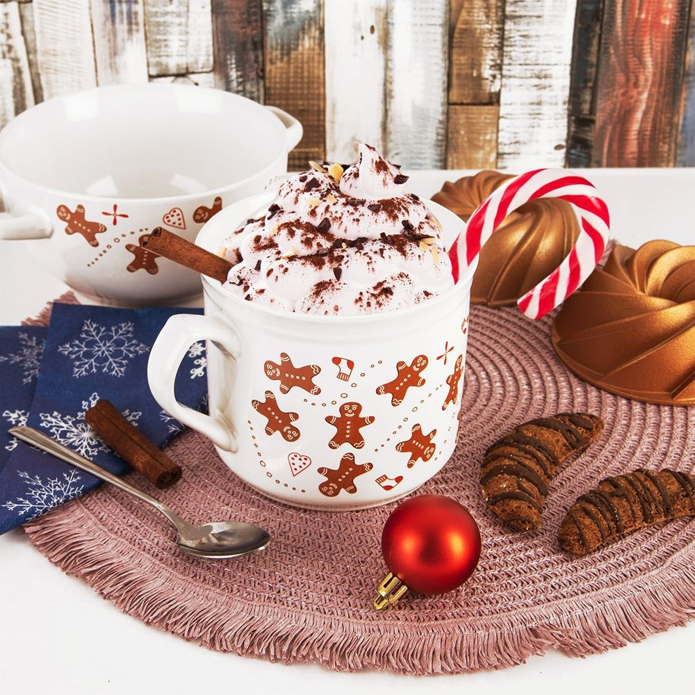 HYÖDYLLINEN - Muki, jossa on kahva ja joulukoristeita juomien nauttimiseen. Täydellinen jokapäiväiseen käyttöön. Mukin kokonaistilavuus on 700 ml ja mitat: halkaisija 11,5 cm, pituus kahvan kanssa 14,5 cm, korkeus 10 cm. Täydellinen teen, kahvin, yrttien, kaakaon ja muiden juomien nauttimiseen.