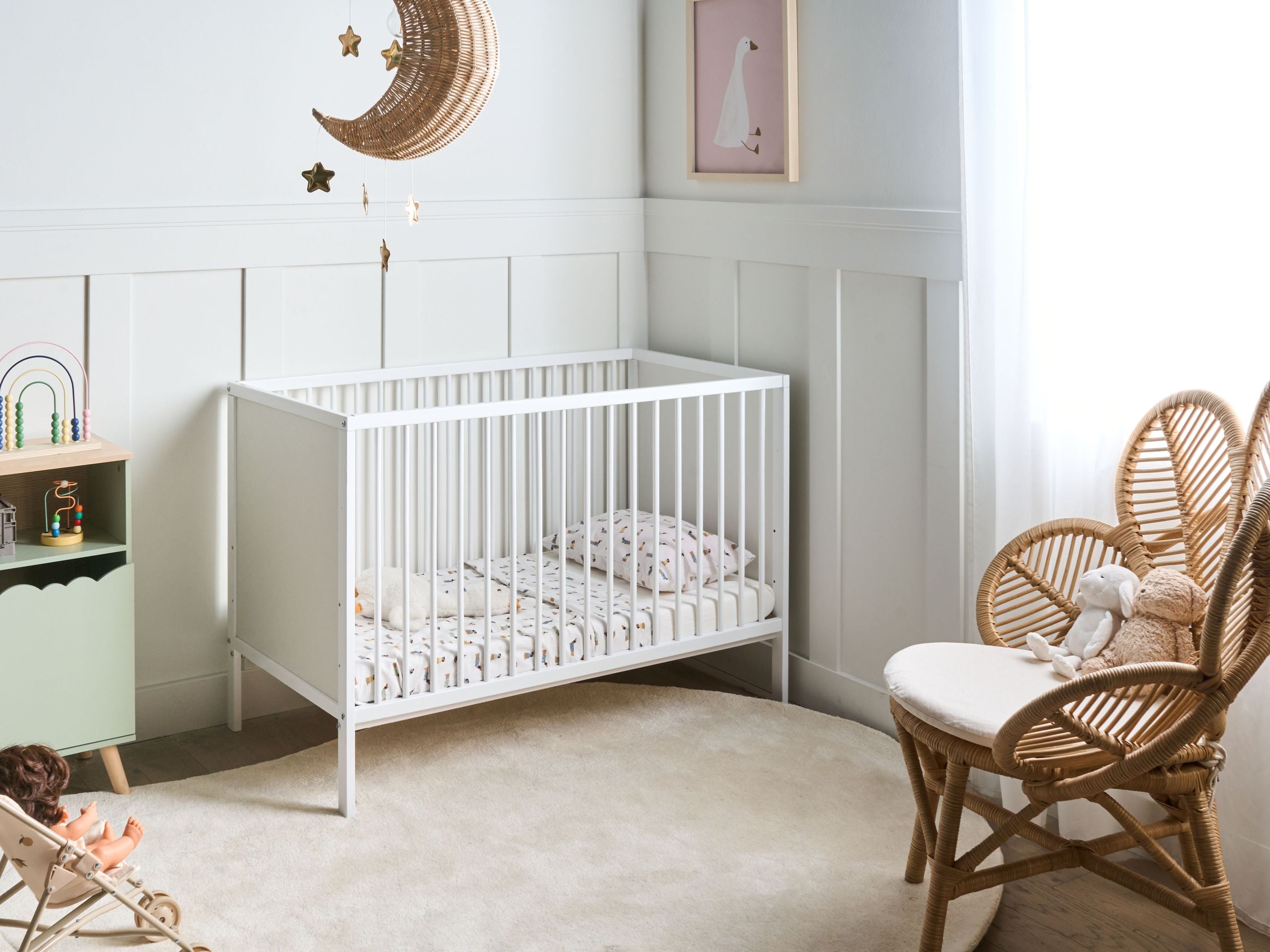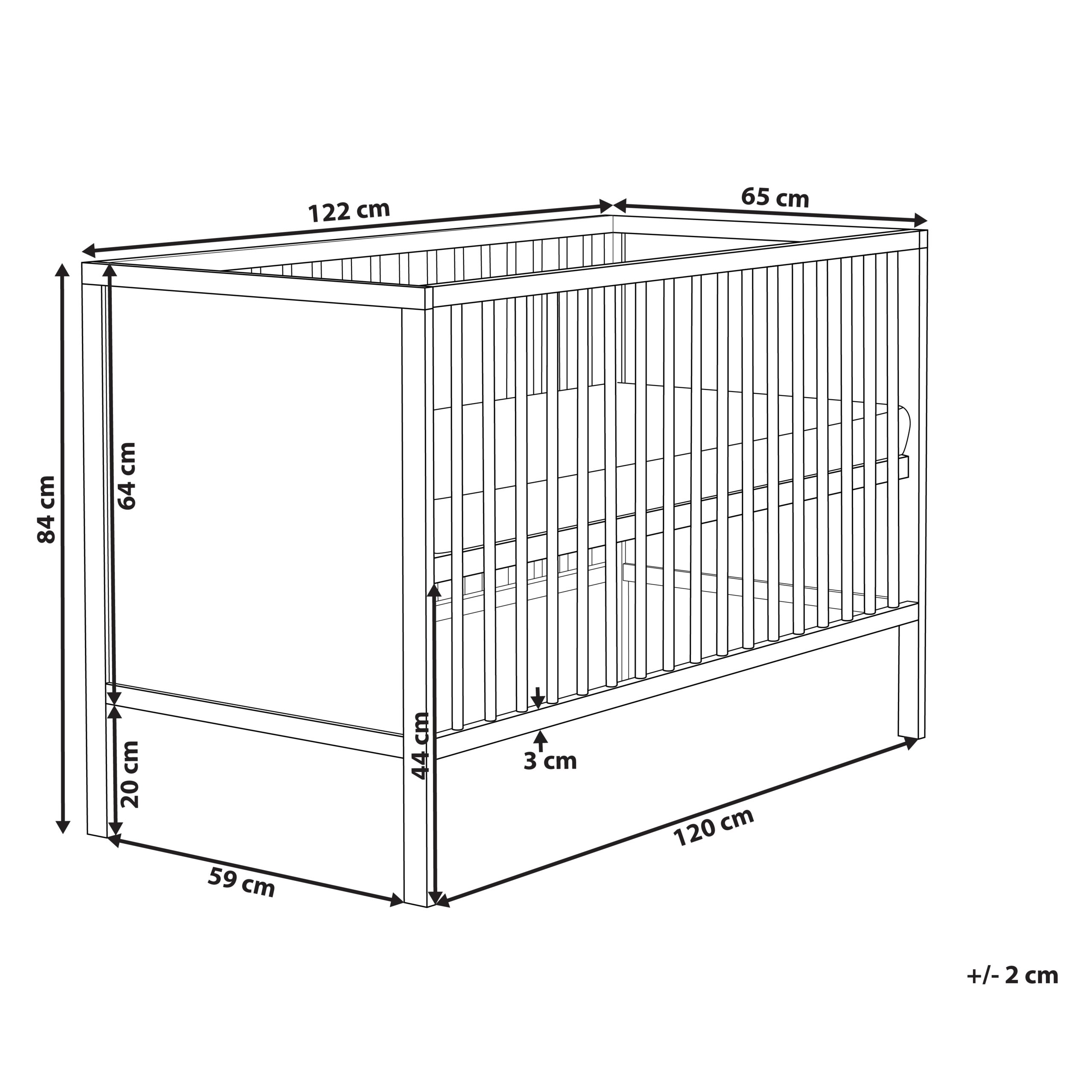 Minimalistinen kehto korkeussäädettävällä sälepohjalla. Tämä tyylikäs pinnasänky on valmistettu kestävästä MDF-levystä ja varustettu sisäänrakennetulla sälepohjalla optimaalisen ilmankierron ja turvallisuuden varmistamiseksi. Sälepohjan korkeutta voidaan nostaa tai laskea patjan kanssa vauvan kasvaessa, mikä helpottaa vanhempien pääsyä sänkyyn ja takaa mukavuuden kaikissa vaiheissa. Puhtaat linjat ja ajaton ulkonäkö sulautuvat kauniisti mihin tahansa moderniin lastenhuoneeseen. Se on käytännöllinen ja luotettava valinta rauhalliseen uneen ensimmäisestä päivästä lähtien.