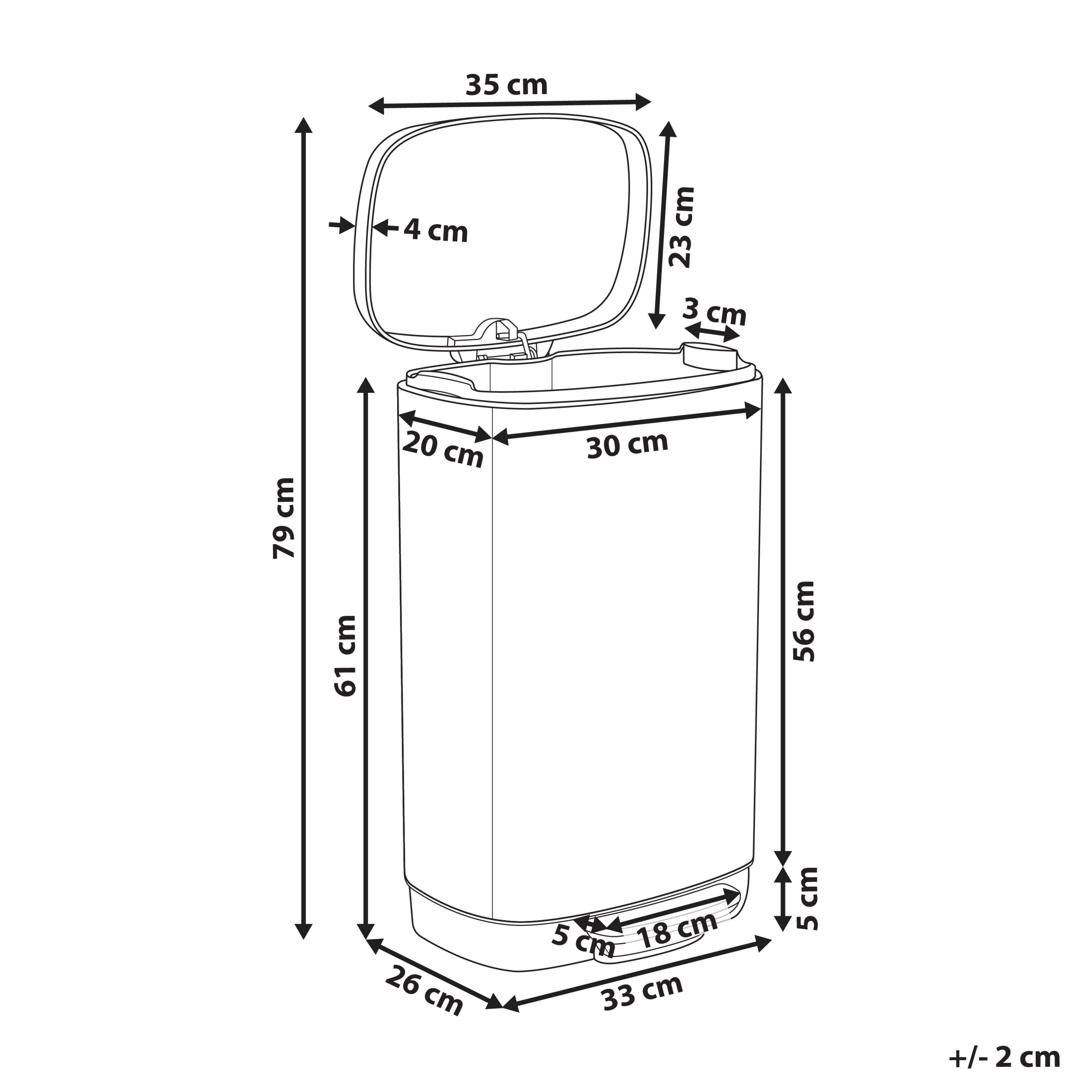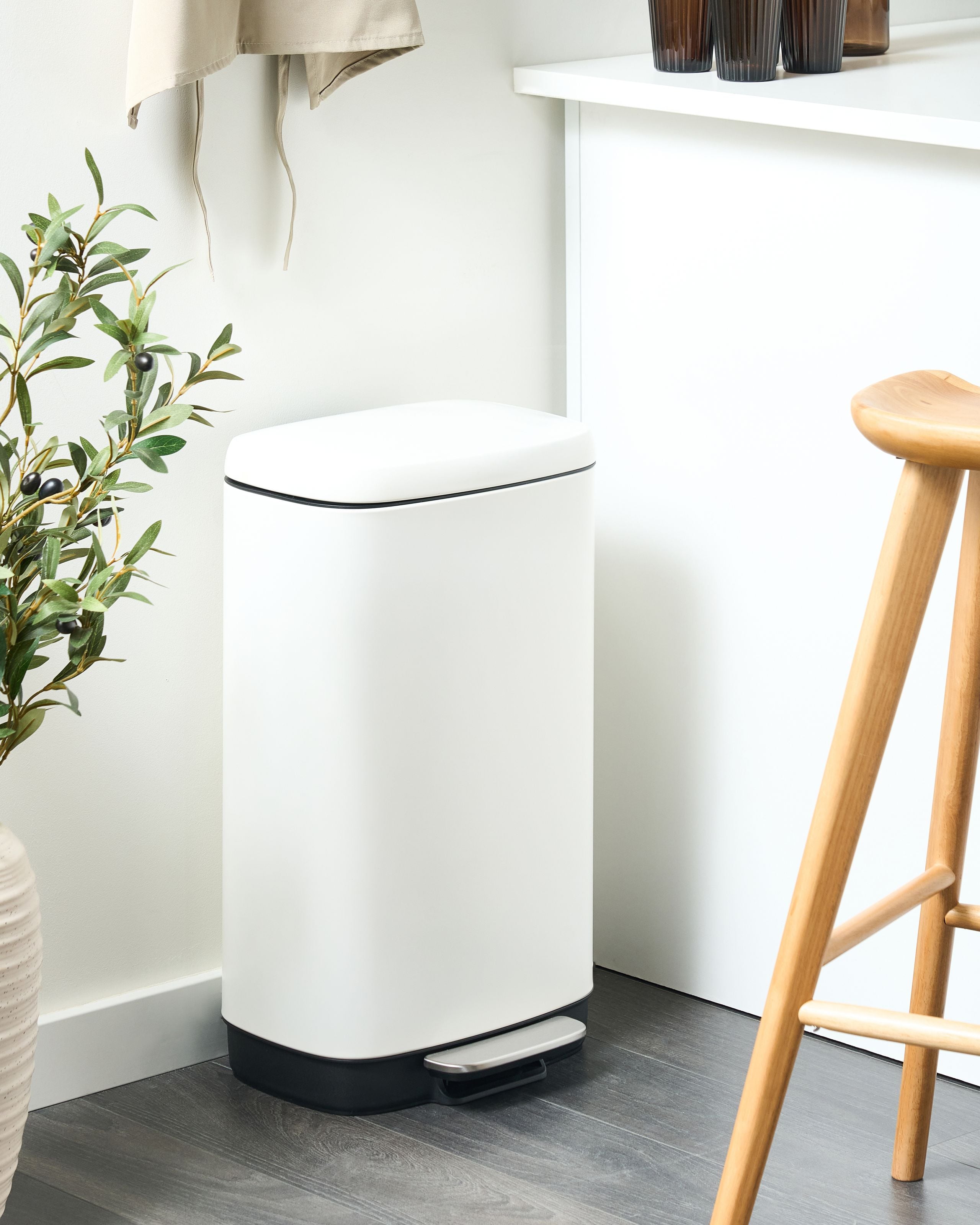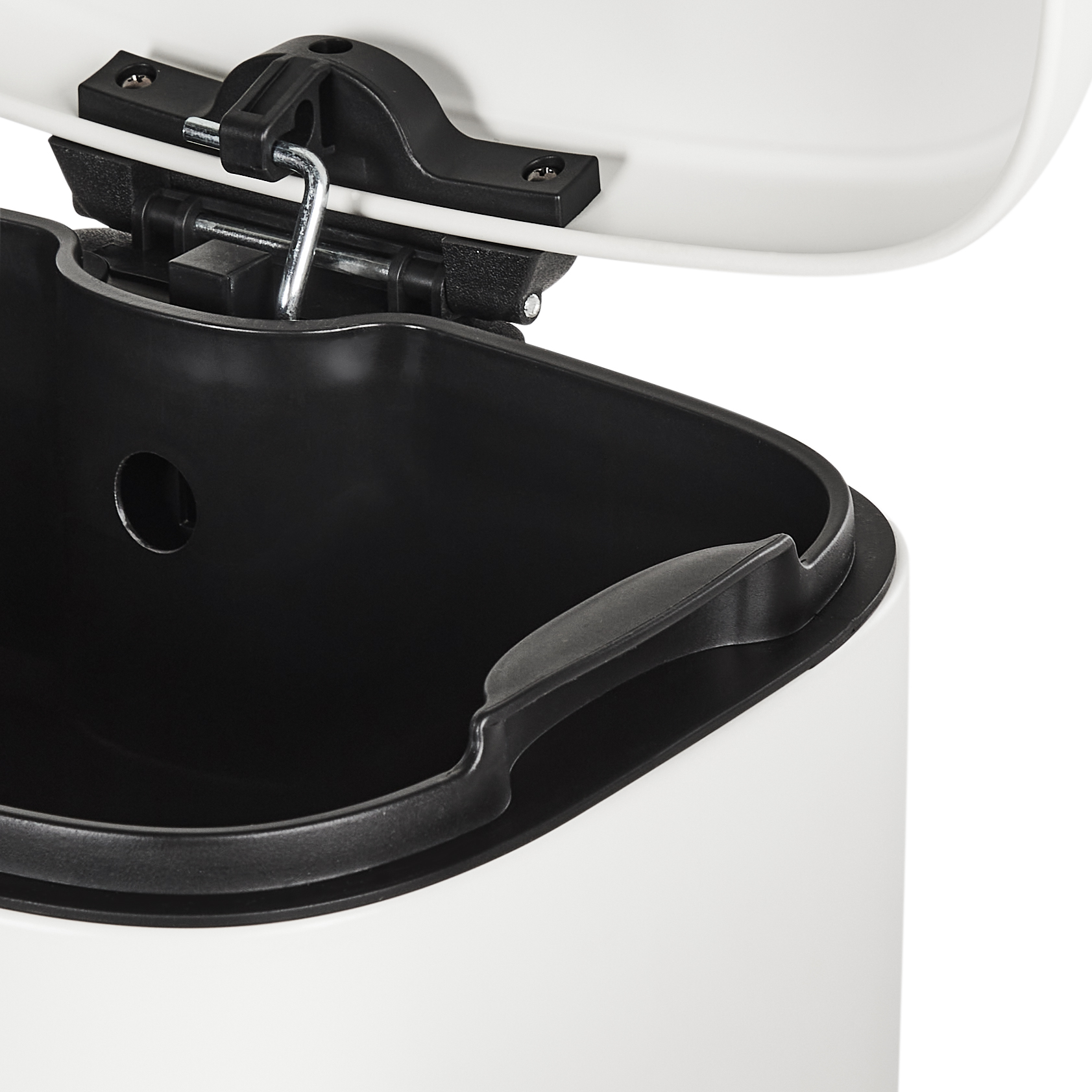 Moderni poljinroskis keittiöön. Lisää kotiin tyylikäs mutta käytännöllinen elementti tällä poljinroskakorilla, joka on valmistettu raudasta ja mahdollistaa vaivattoman käytön ilman käsiä. Roskakorissa on pehmeästi sulkeutuva kansi hiljaista ja sulavaa käyttöä varten. Sormenjälkiä estävä pinnoite pitää pinnan tahrattomana ja varmistaa helpon ylläpidon. Irrotettava synteettinen sisäastia on varustettu kädensijoilla, joten se on helppo tyhjentää. Poljinroskis sopii erinomaisesti jokaiseen nykyaikaiseen tilaan.
