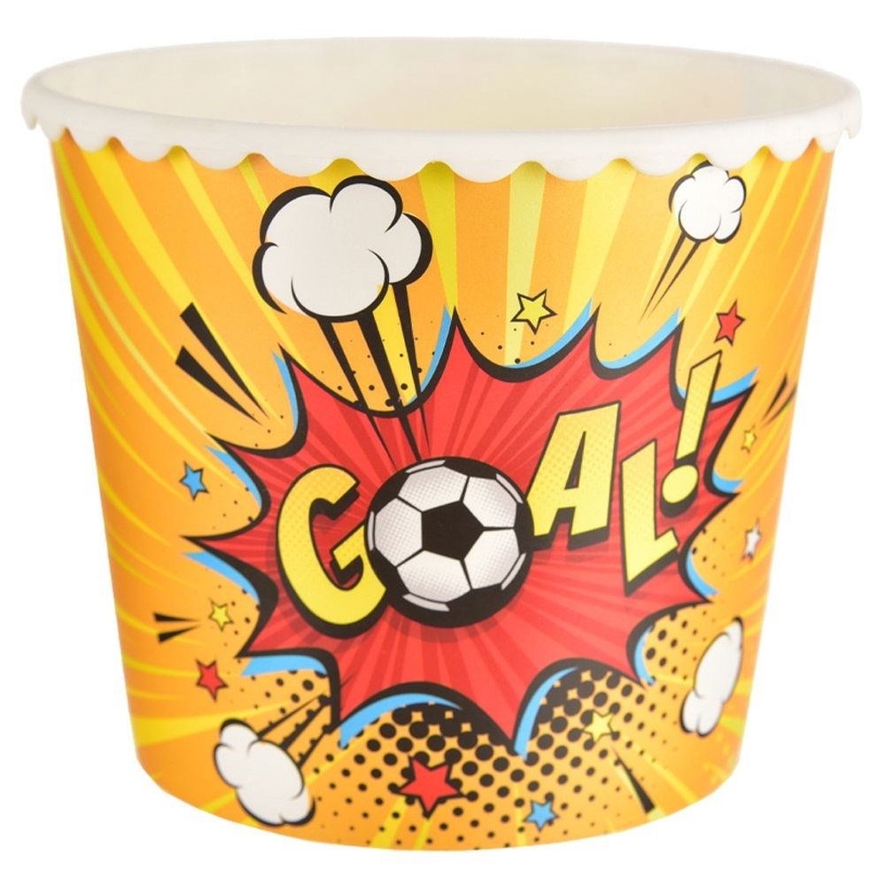 Popcorn- ja sipsirasia, jonka tilavuus on 2,3 litraa. Kätevä käyttää, siihen mahtuu suuri määrä popcornia. Astiassa on mielenkiintoinen koriste jalkapallomaalin muodossa, joten se näyttää erittäin vaikuttavalta. Se sopii täydellisesti kotielokuviin ja juhliin sekä lapsille että aikuisille. Sitä voidaan käyttää myös jälkiruokapöydässä, jolloin sisällä oleva popcorn näyttää uskomattoman vaikuttavalta. Muki on loistava lahjaidea kaikille kotielokuvien ja popcornin ystäville. Astia ei kestä astianpesukonetta eikä mikroaaltouunia. Alkuperäinen tuote tšekkiläiseltä Orion-merkiltä. Valmistettu eurooppalaisten standardien mukaisesti.