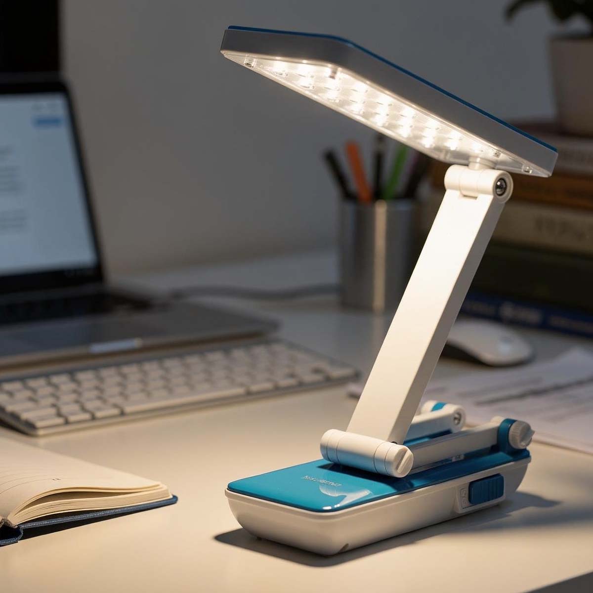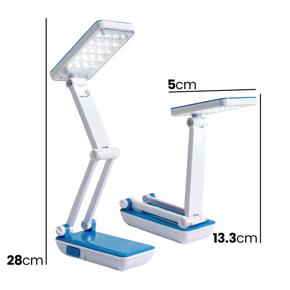 Tässä kokoontaitettavassa LED-pöytävalaisimessa yhdistyvät moderni muotoilu ja visuaalinen mukavuus jokapäiväiseen käyttöön. Se on varustettu 24 SMD-LED-valolla, joka levittää tasaista, välkkymätöntä valoa ja vähentää silmien rasitusta lukiessa tai työskennellessä pitkiä aikoja. Sen kolme kirkkaustasoa mukautuvat jokaiseen tarpeeseen. Sen nivelletty varsi mahdollistaa valaisukulman vapaan säätämisen. Verkkovirtalähde 110-220 V.