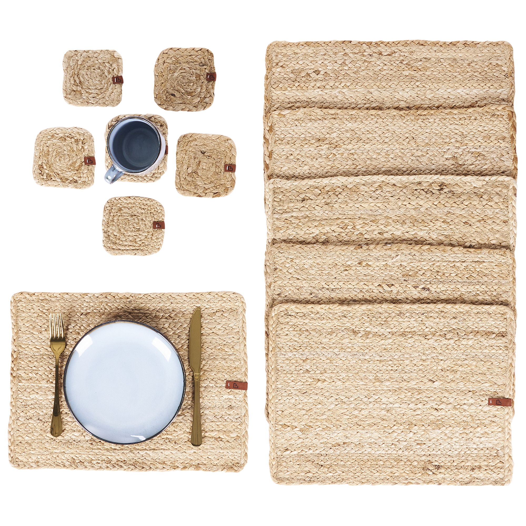 Pöytätabletti- ja lasinalussetti 6+6 QUANDONG Luonnonväri Juutti