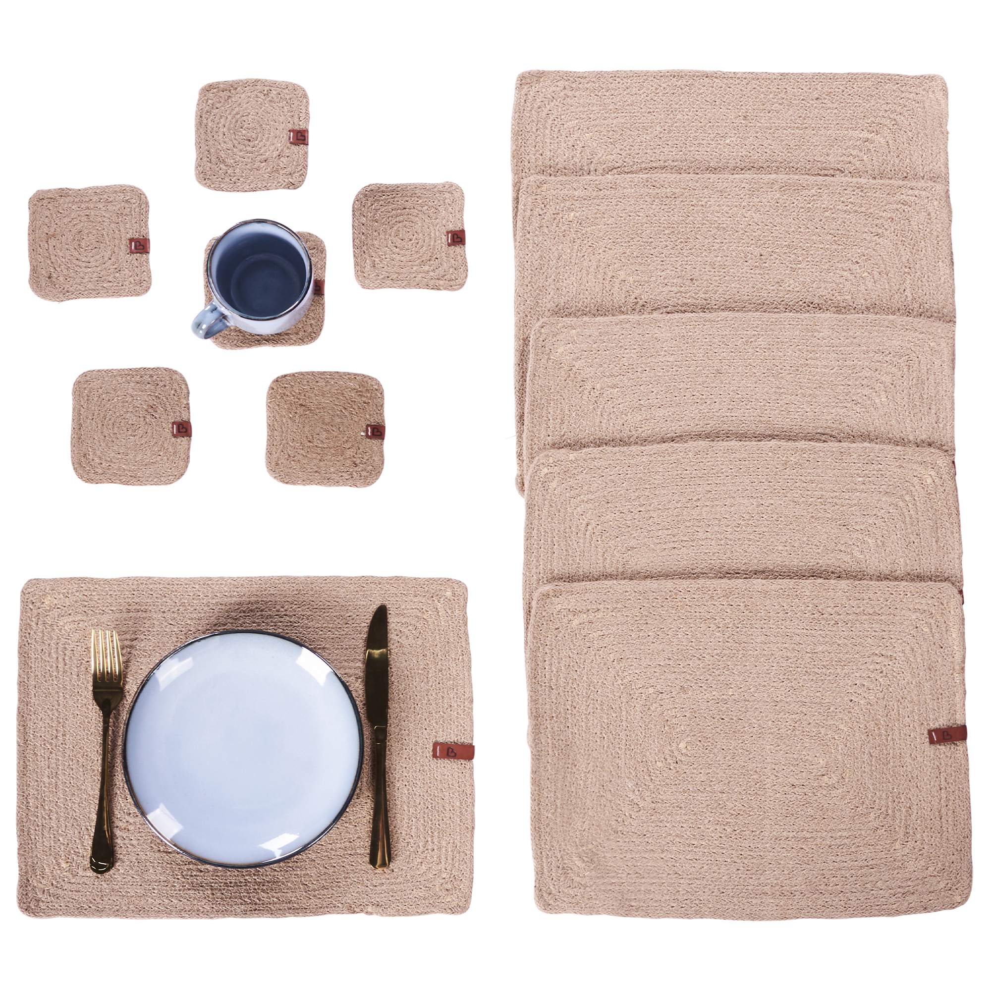 Pöytätabletti- ja lasinalussetti 6+6 SALTBUSH Luonnonväri Juutti