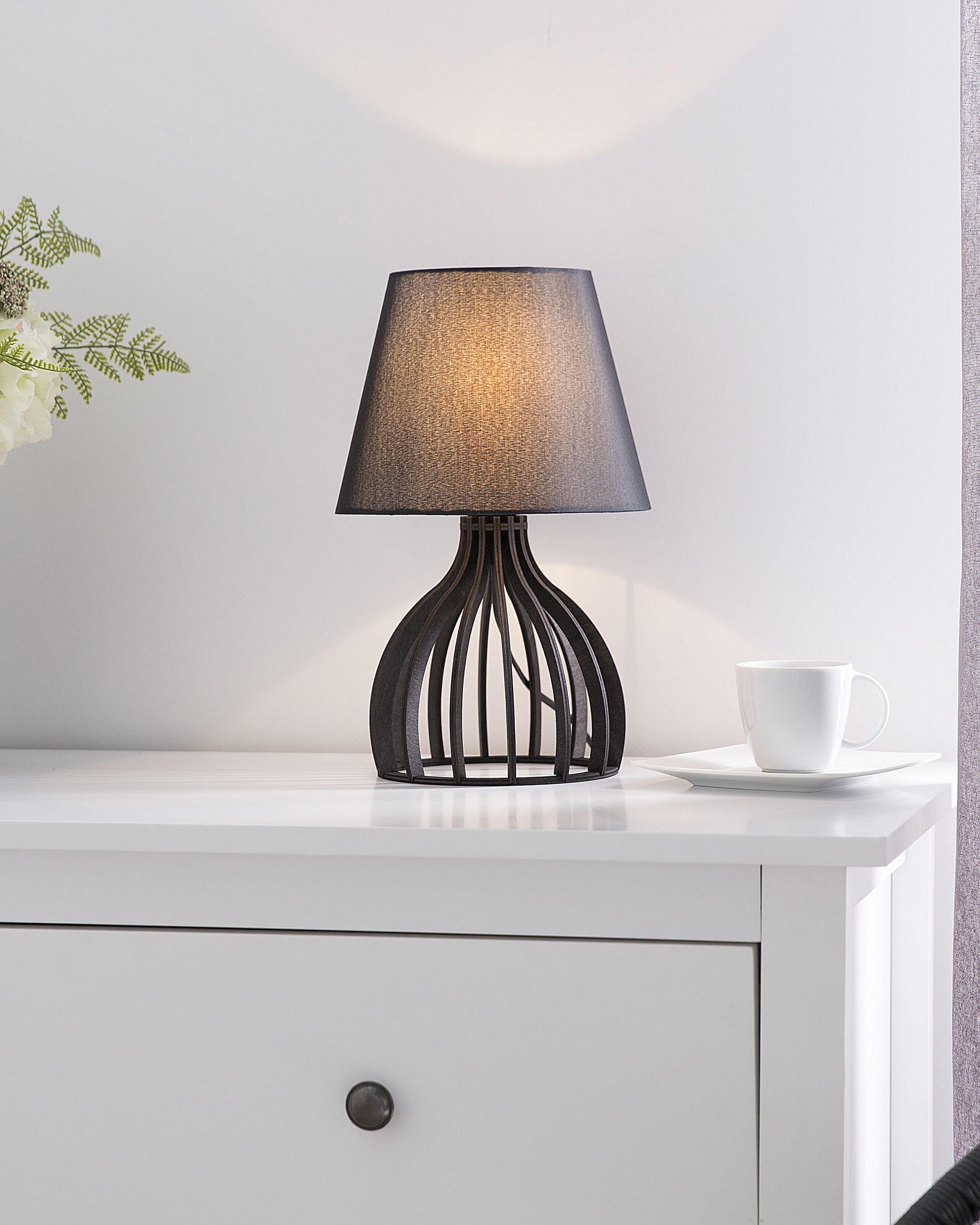 Minimalistinen yöpöydän valaisin. Tämä upea pöytävalaisin täydentää loistavasti nykyaikaisen tai skandinaavisen sisustuksen. Sen klassisen neutraali musta kankainen lampunvarjostin ja vaalea puinen jalka luovat yhdessä kokonaisuuden, joka sopii niin olohuoneeseen, makuuhuoneeseen kuin kotitoimistoonkin.