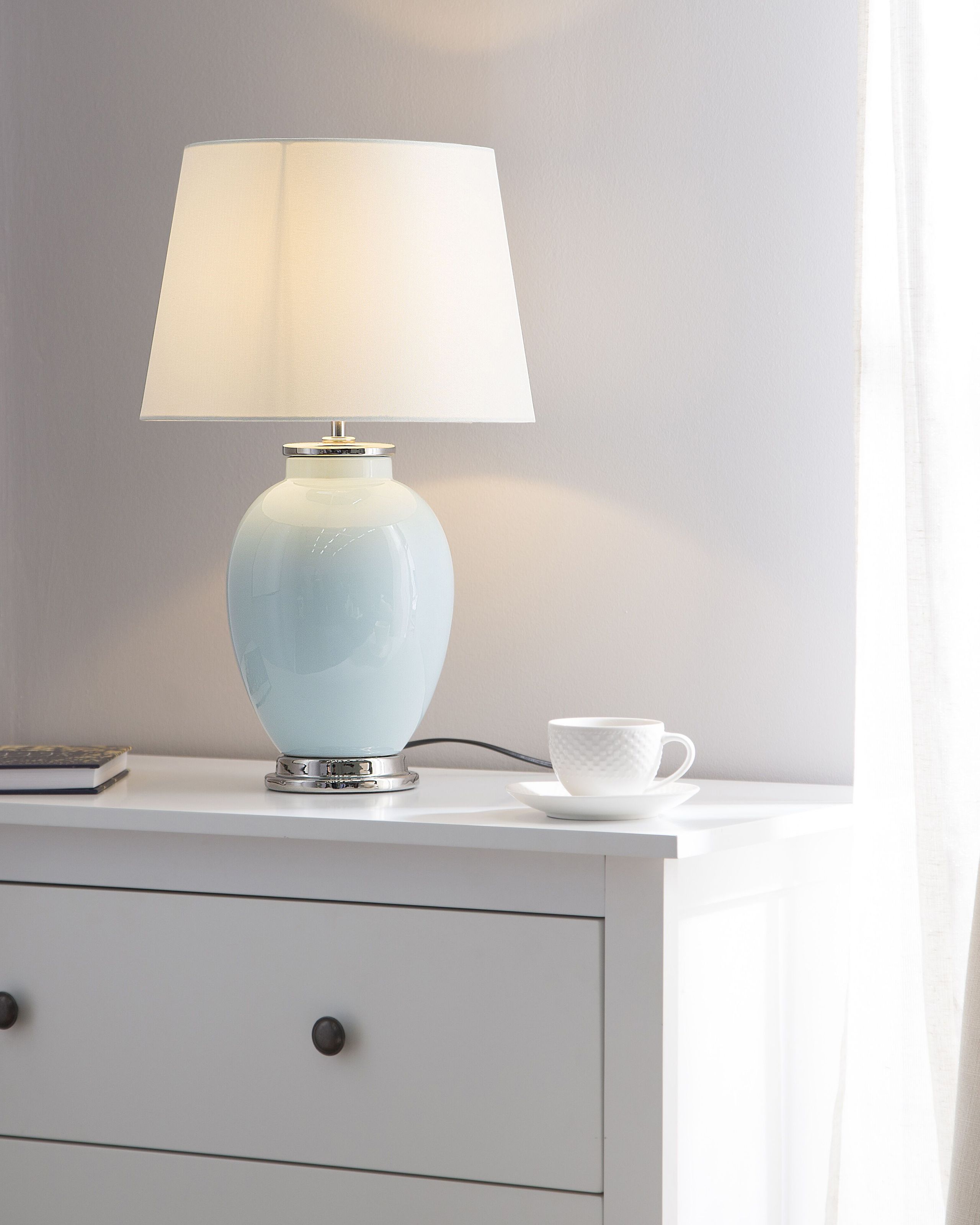 Perinteinen yöpöydän valaisin. Valoa makuuhuoneesi, kotitoimistoosi tai olohuoneesi tällä tyylikkäällä sinisellä pöytävalaisimella. Se hurmaa yksinkertaisuudellaan, käytännöllisyyttä unohtamatta. Polttimo ei tule valaisimen mukana.