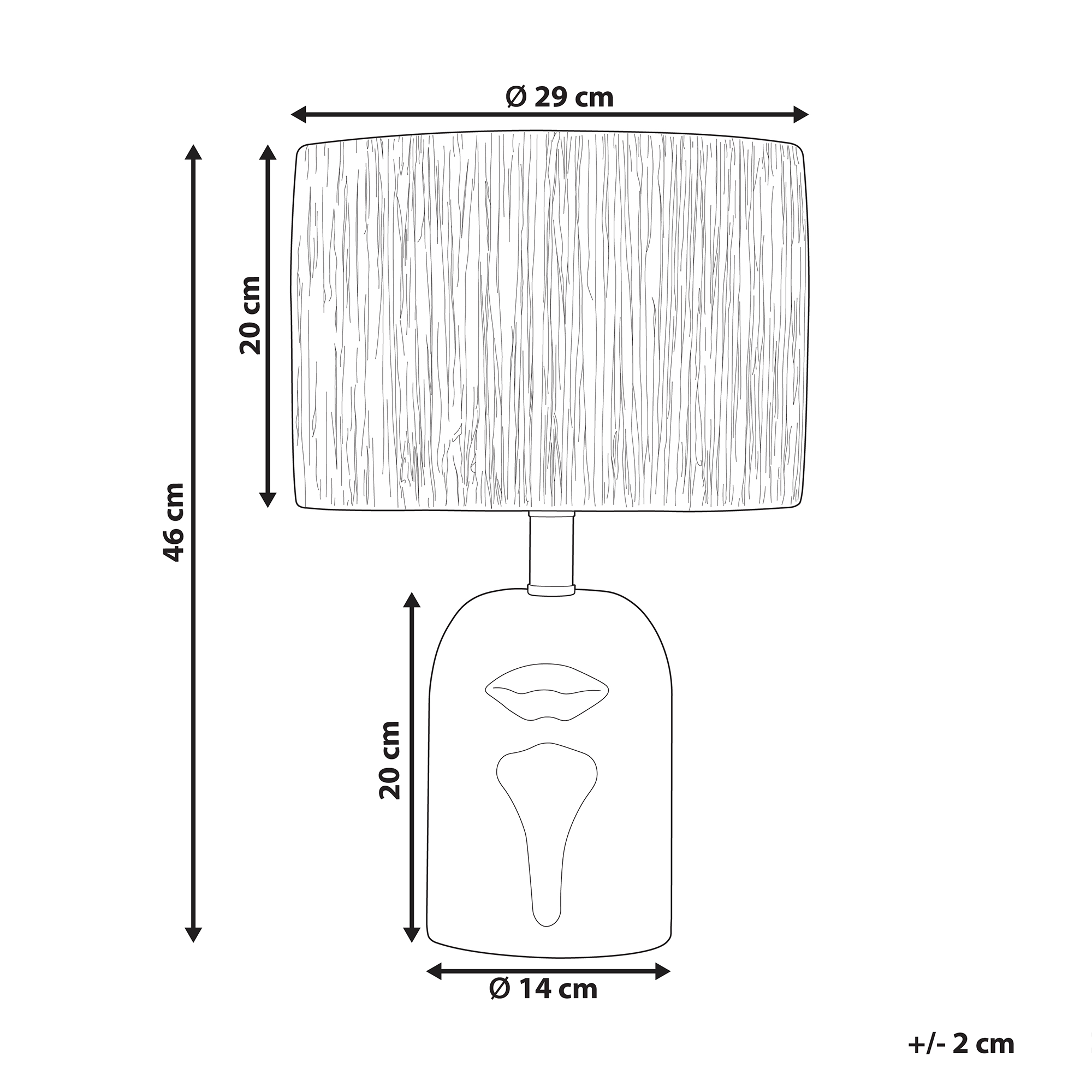 Kohokuvioitu yöpöydän valaisin paperivarjostimella. Tuo sisustukseesi uutta lumoa tällä tyylikkäällä pöytävalaisimella. Sen keraamista jalkaa koristaa tyylikäs kasvoja muistuttava kohokuvio, joka lisää taiteellista tuntua ympäristöön. Valaisimen luonnollinen tyyli sulautuu vaivattomasti moniin erilaisiin sisustuksiin, tuoden siihen orgaanista viehätystä. Sylinterin muotoinen paperivarjostin heijastaa rauhoittavaa ja pehmeää valoa, joka tekee tilasta lämpimän ja kodikkaan tuntuisen.