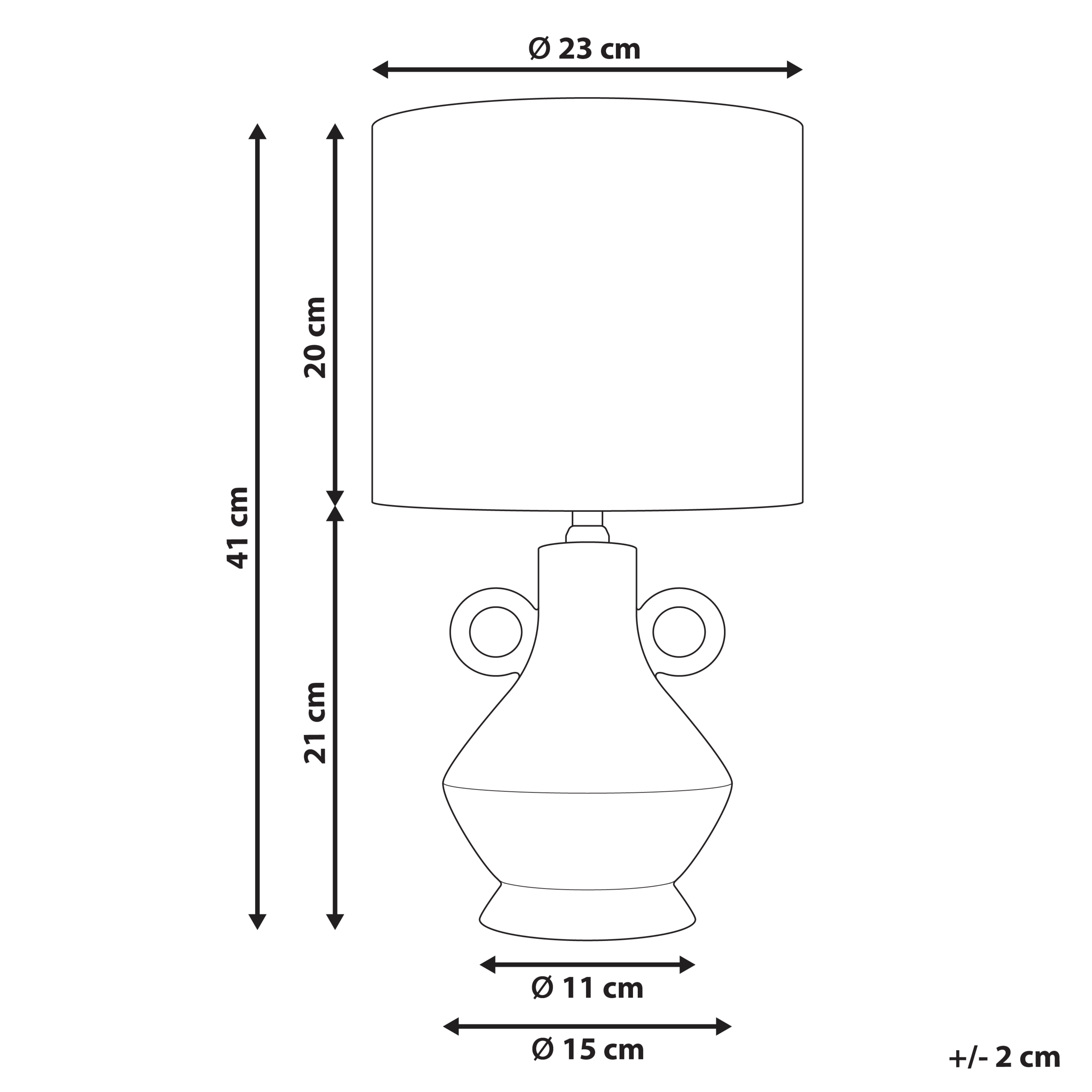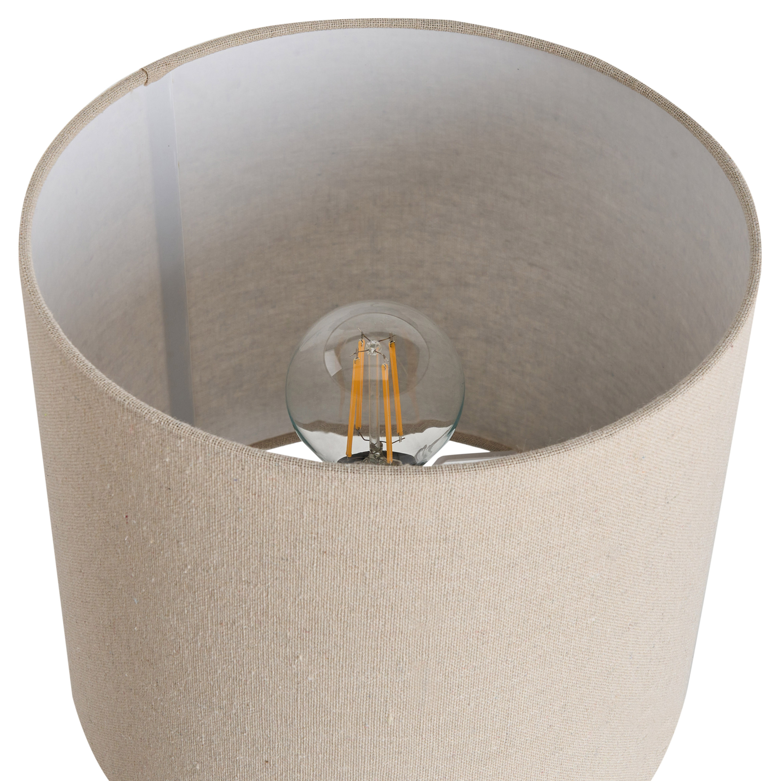 Klassinen pöytävalaisin. Lisää kotiisi omaleimaista charmia tällä tyylikkäällä pöytävalaisimella, joka sopii mihin tahansa huoneeseen. Keraamisessa rungossa on sileä viimeistely ja kaksi koristeellista kahvaa, jotka luovat kauniin kontrastin kangasvarjostimen punotun tekstuurin kanssa. Valaisin luo lämpimän tunnelman, joka sopii täydellisesti olohuoneeseen tai makuuhuoneeseen.