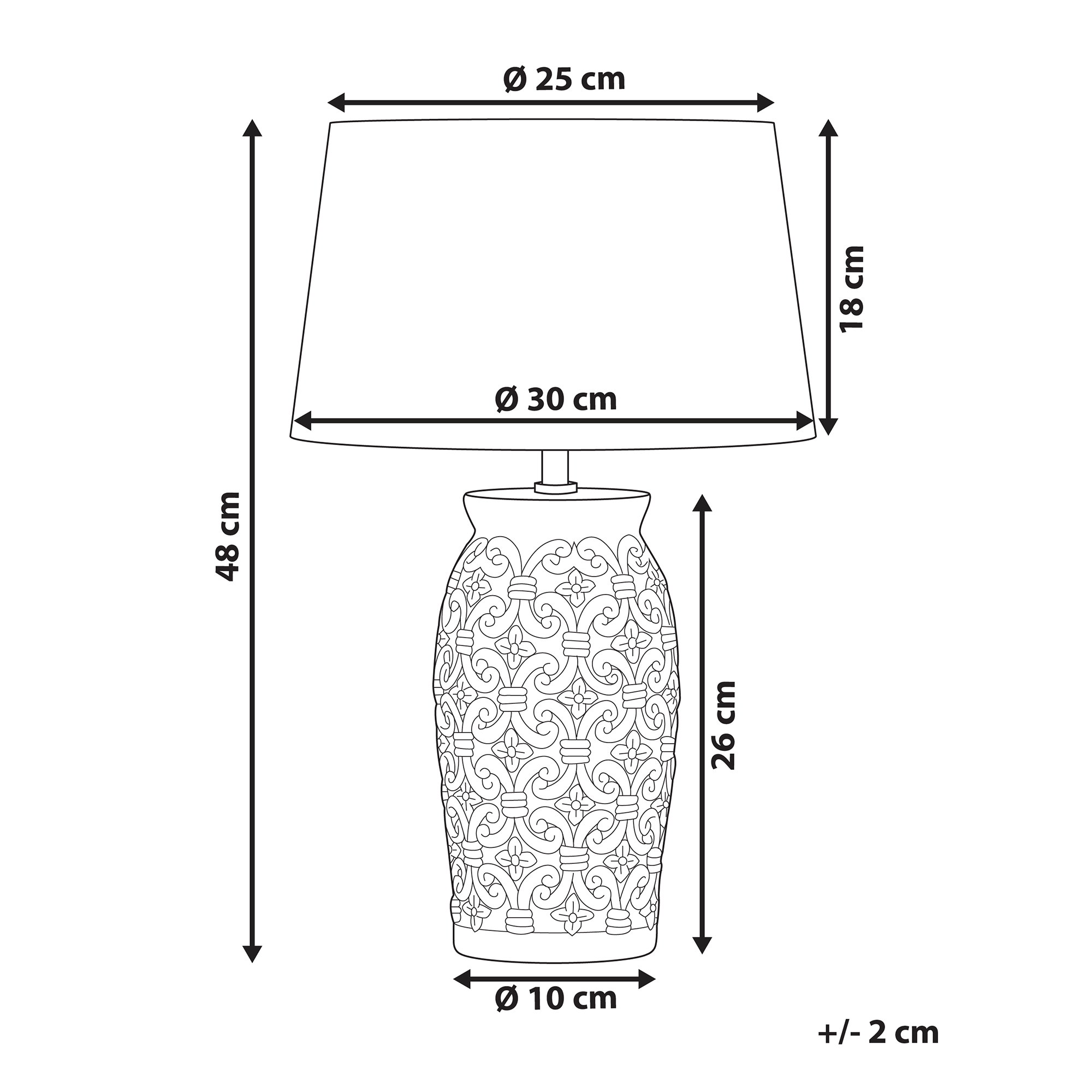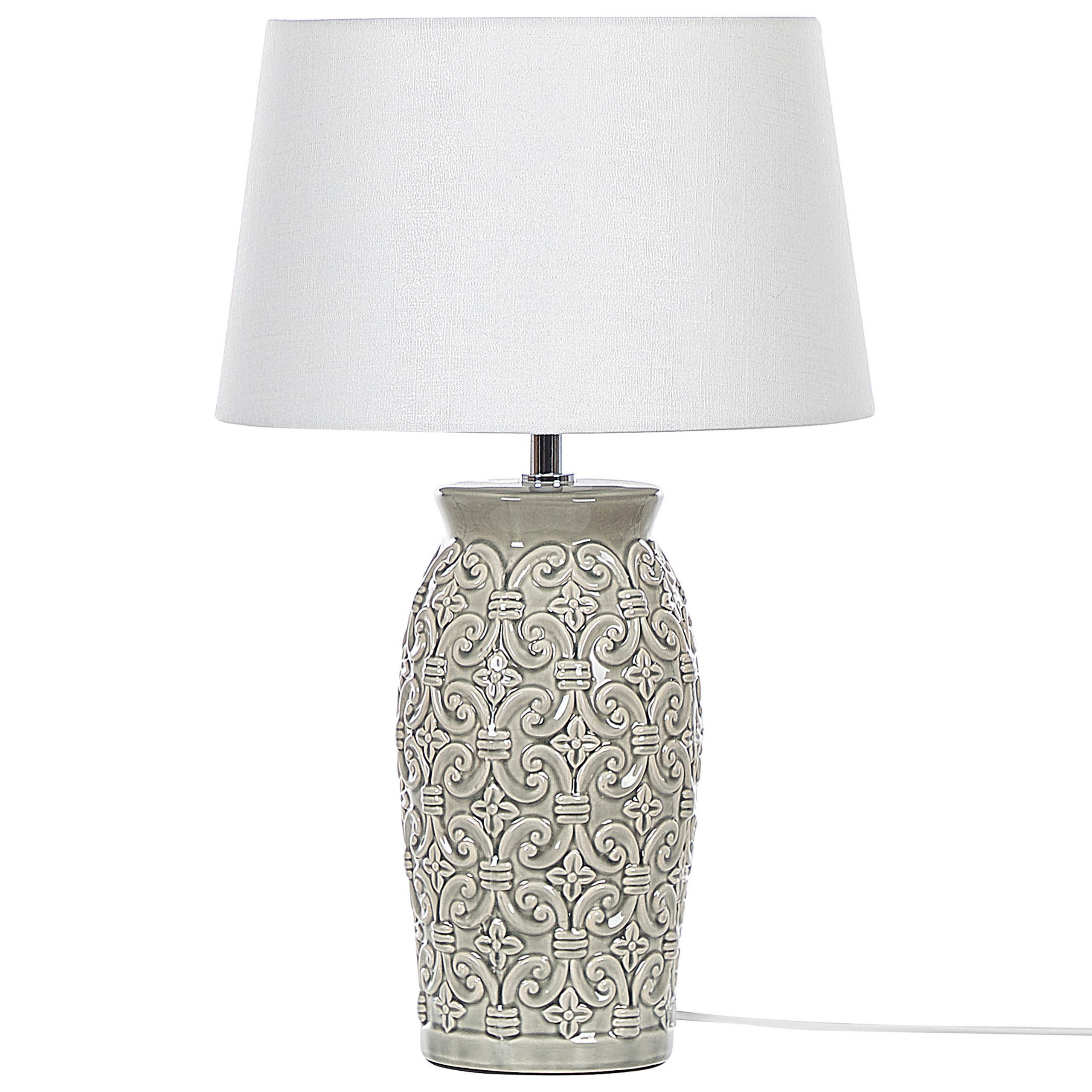 Moderni yöpöydän valaisin geometrisella kuvioinnilla. Tämä pöytävalalisin on kaunis esine, joka antaa sisustukseen ainutlaatuista luonnetta. Laadukas keraaminen jalka on koristeltu upealla geometrisella kuvioinnilla. Valkoiseen varjostimeen yhdistettynä valaisin on oiva lisä mihin tahansa kotiin. Valaisimessa on tyylikäs moderni muotoilu ja se sopii hyvin makuu- tai olohuoneeseen tunnelmavaloksi.