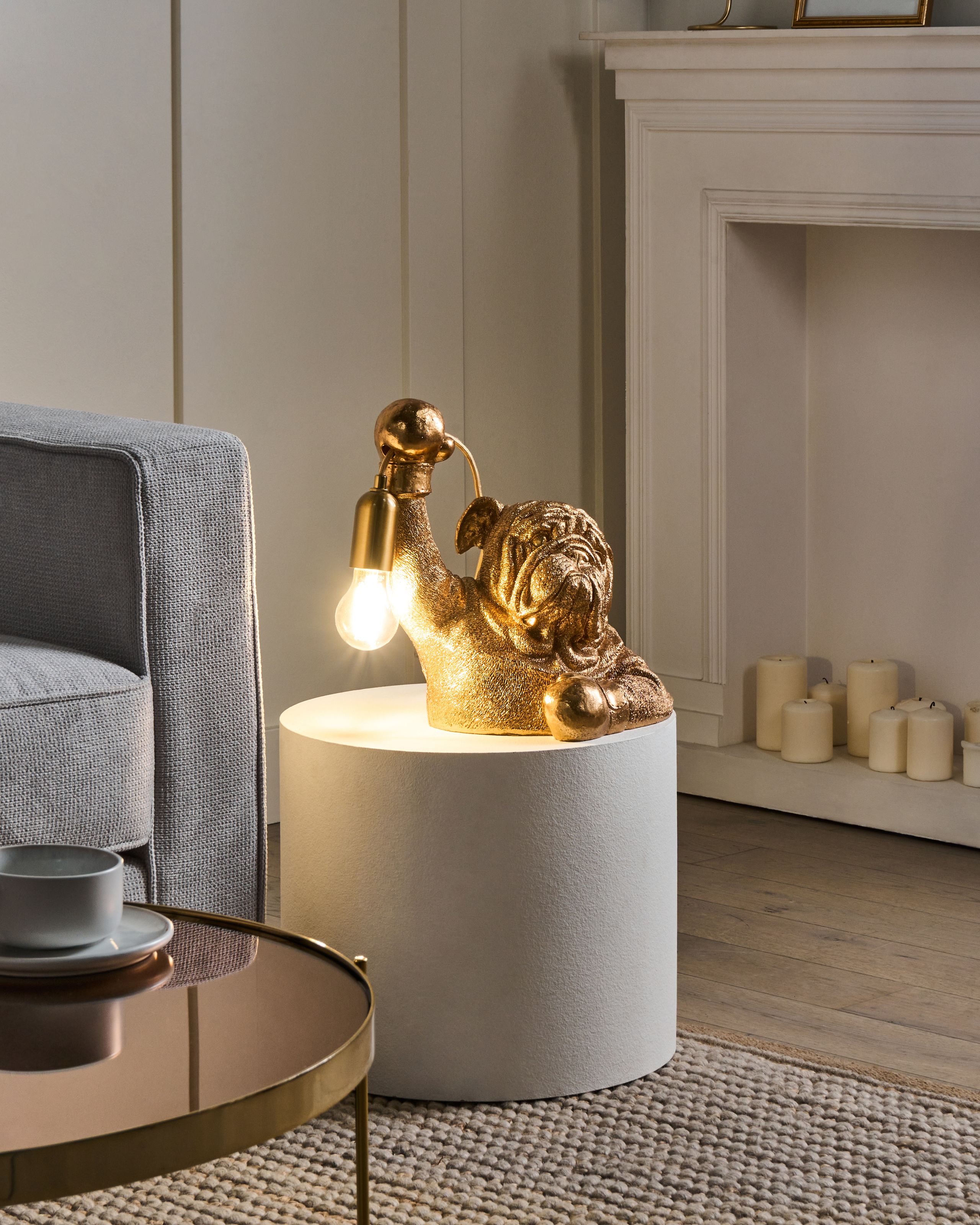 Leikkisä koiravalaisin. Tämä hieno koiranmuotoinen pöytävalaisin valaisee tilan ja toimii samalla viehättävänä sisustuselementtinä. Kestävästä polyhartsista käsin valmistettu valaisin on suunniteltu kestämään vuosia ja säilyttämään moitteettoman kauneutensa. Se sopii täydellisesti yöpöydälle, lastenhuoneeseen tai kodikkaaseen lukunurkkaukseen ja herättää varmasti huomiota.