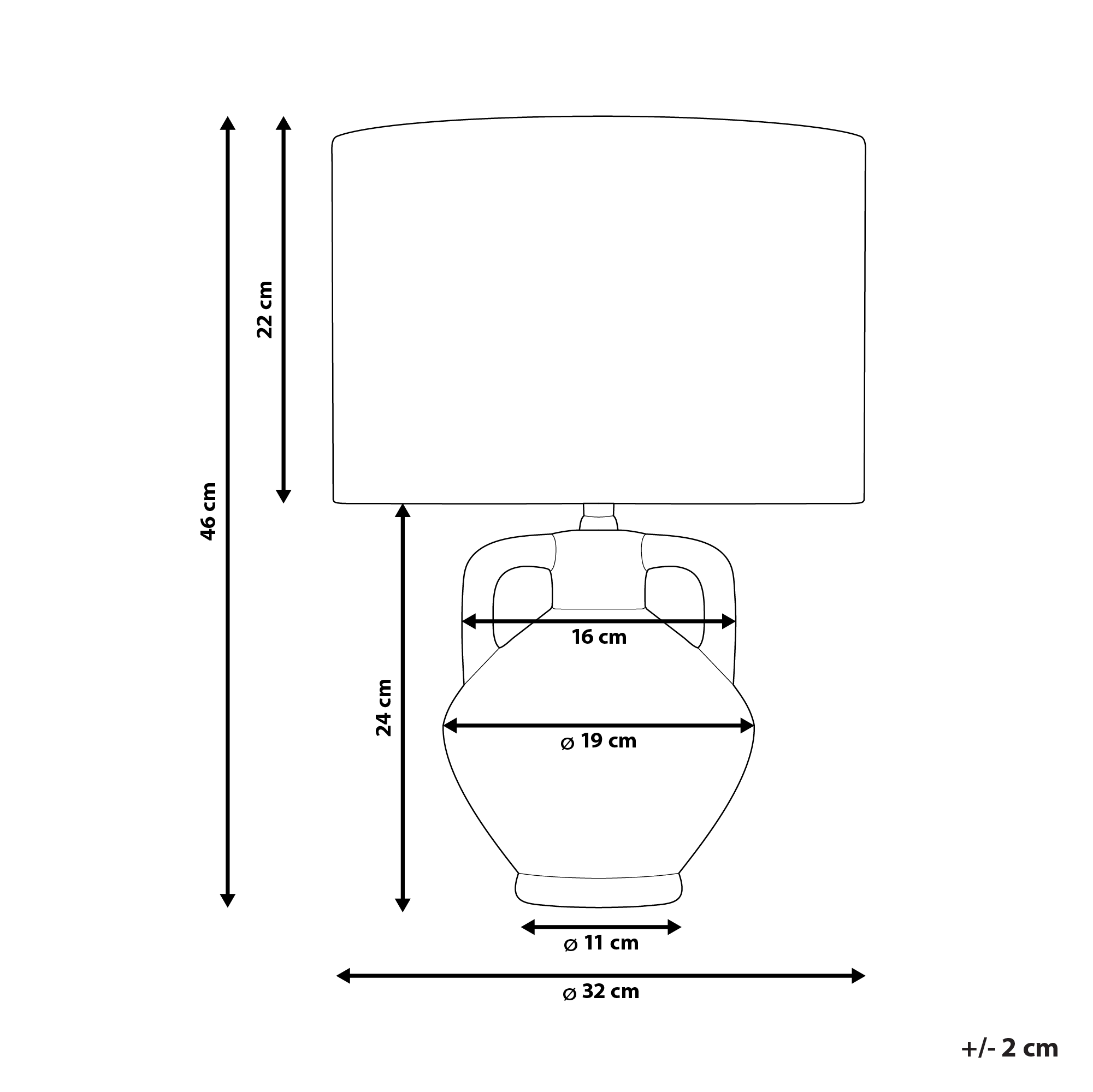 Kaunis maljakon muotoinen valaisin. Tuo kotiisi näyttävä ja koristeellinen aksentti tällä pöytävalaisimella, jonka muotoilu muistuttaa antiikkista maljakkoa. Sen vintage-henkinen ilme korostuu kauniisti muotoillussa keraamisessa jalassa, jota täydentävät eleganssia lisäävät hienostuneet kahvat. Pellavainen sylinterivarjostin täyttää valaisimen ympäristön lämpimällä ja miellyttävällä valolla. Valaisin tuo vaivattomasti ripauksen ajatonta tyyliä mihin tahansa huoneeseen, mikä tekee siitä täydellisen lisän kaikenlaisiin tiloihin.