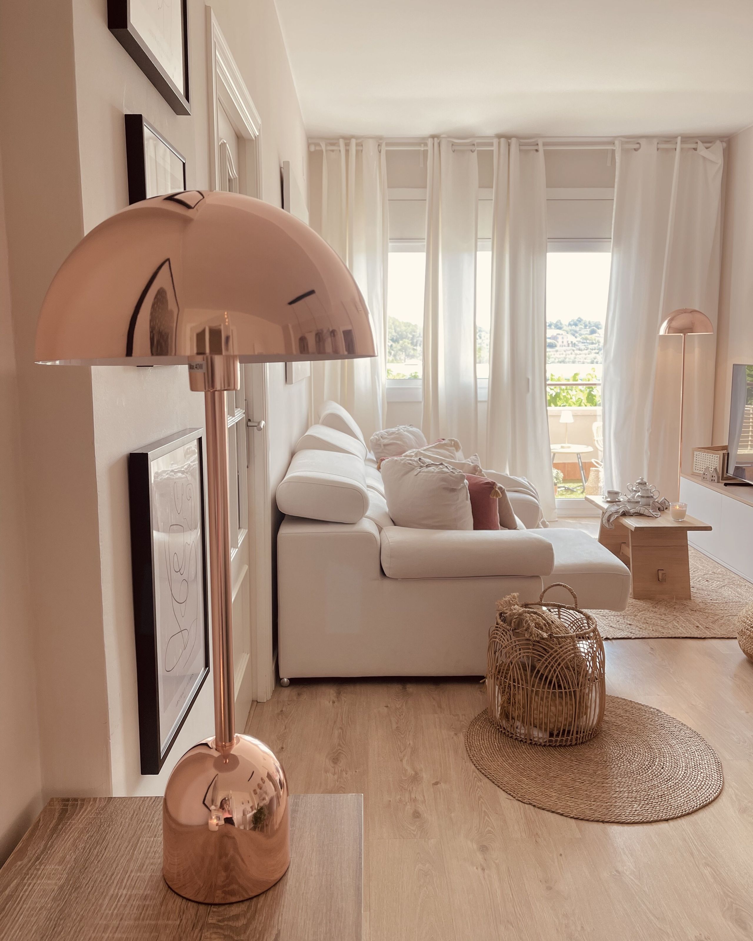 Industriaalinen valaisin. Tämä minimalistinen pöytävalaisin on täydellinen moderniin sisustukseen. Se valaisee kauniisti minkä tahansa olohuoneen, eteisen tai makuuhuoneen. Metallinen jalka ja varjostin on viimeistelty kiiltävän kuparisella värillä. Yksinkertaisen muotoilunsa ansiosta valaisin on helppo yhdistää useisiin eri sisustustyyleihin. Hienovarainen valo on täydellinen kirjan lukemiseen.