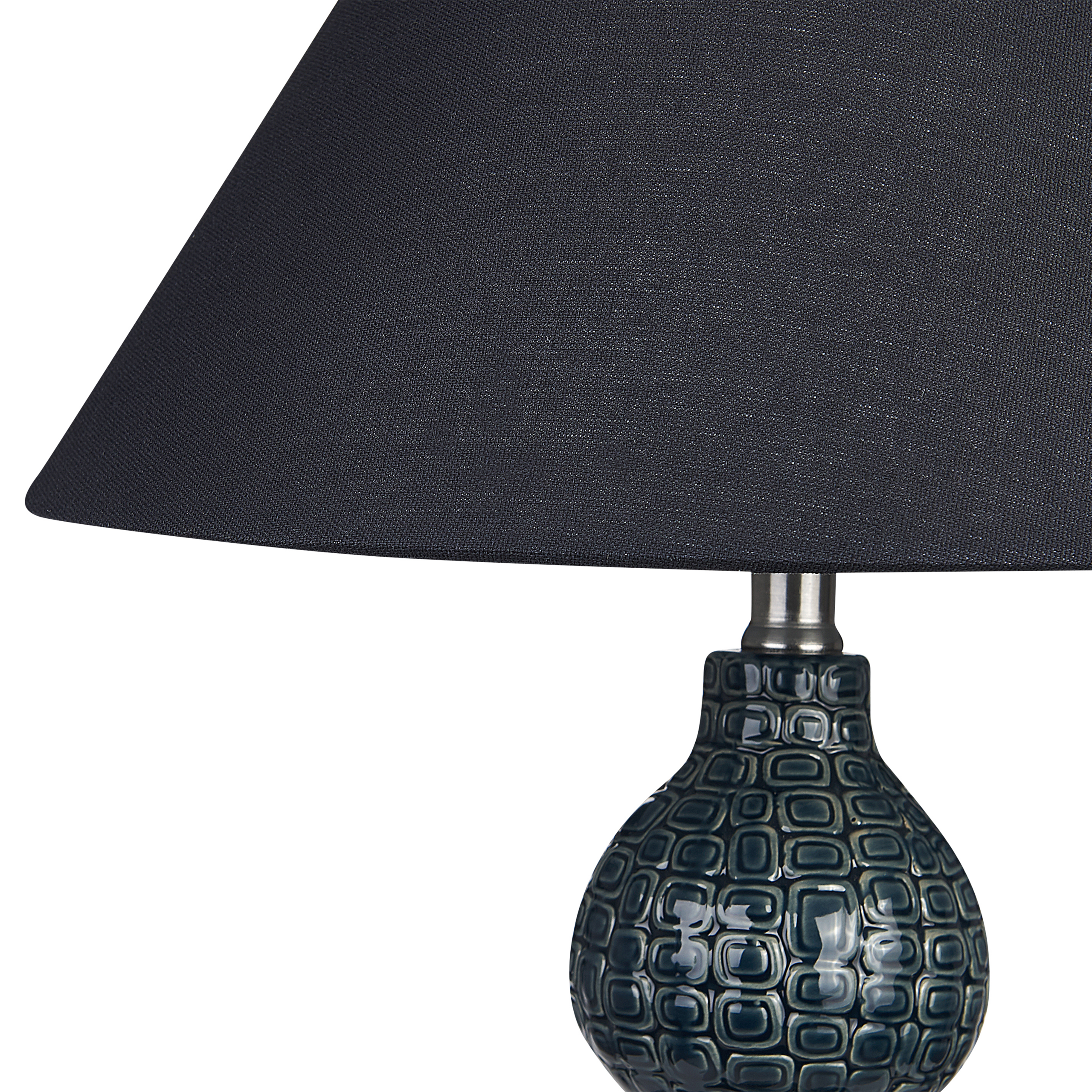 Retrovalaisin koristeellisella jalalla. Tuo retrotyyliä makuuhuoneeseesi tai olohuoneeseesi tällä tyylikkäällä pöytävalaisimella. Sen tummansininen, keramiikasta valmistettu jalka on viimeistelty geometrisilla kaiverruksilla, jotka antavat valaisimelle vintage-ilmeen. Musta, pellavasta valmistettu kartiovarjostin korostaa valaisimen jalkaa kauniisti, antaen sille moderneja vivahteita. Korkealaatuisen materiaalinsa ansiosta varjostin tarjoaa hellävaraisen ja tunnelmallisen ympäristön valaistuksen, joka sopii täydellisesti lukemiseen.