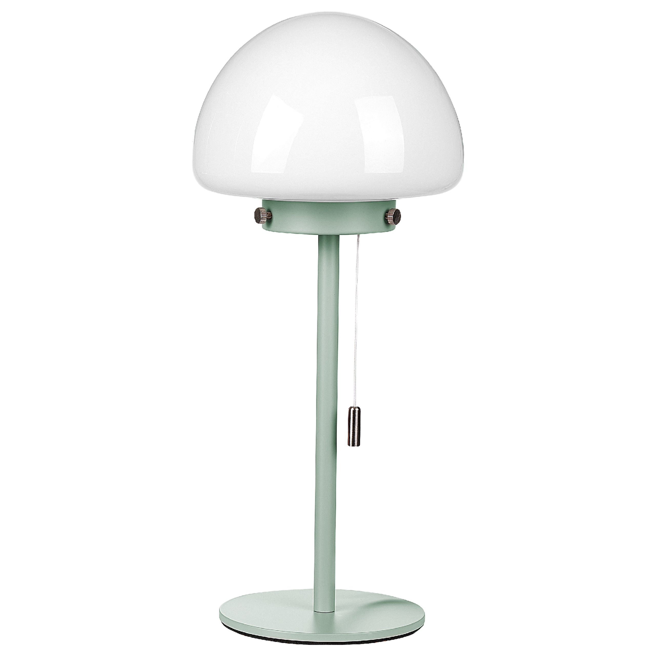Minimalistinen yöpöydän valaisin lasivarjostimella. Kohota sisustuksesi ilmettä tällä kauniilla pöytävalaisimella. Puolipallon muotoinen valkoinen varjostin on valmistettu lasista. Yhdessä vihreä rautajalan kanssa se tekee valaisimesta katseita keräävän korosteen tilaan kuin tilaan – makuuhuoneesta olohuoneeseen. Leikkisä naruvedin antaa valaisimelle vintage-henkeä, tehden valaisimen sytyttämisestä ja sammuttamisesta helppoa. Valaisin sopii erinomaisesti sekä moderneihin että retrotyylisiin sisustuksiin.