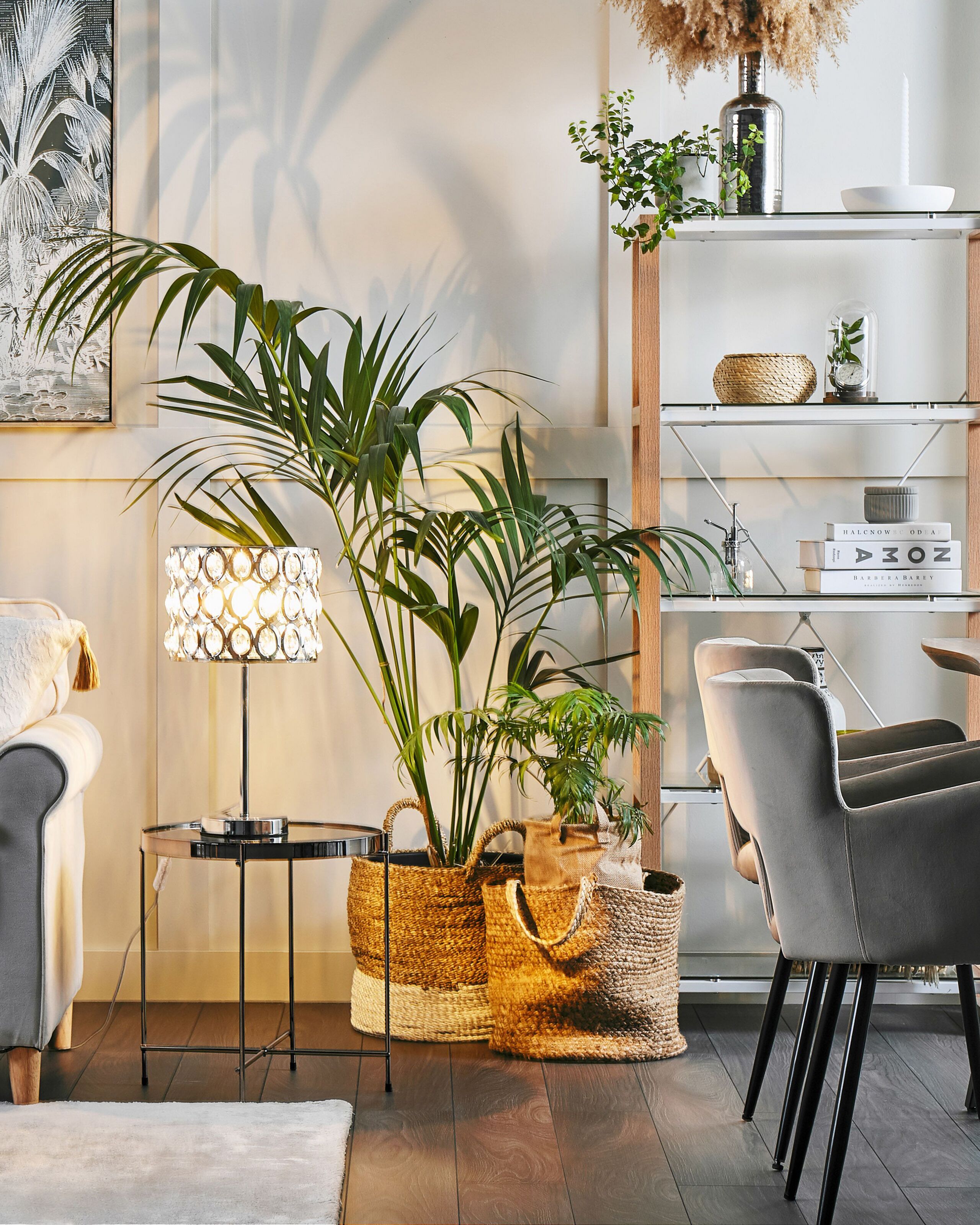 Elegantti valaisin kristallivarjostimella. Tuo valoa ja loistoa kotiisi tällä pöytävalaisimella. Valaisimen jalka on kiiltävää kromattua metallia ja siinä on pyöreä lampunvarjostin, johon on ripustettu helmeileviä lasikristalleja. Kristalleihin osuvat valonsäteet luovat ympärilleen kauniin valaistuksen. Tämä tyylikäs pöytävalaisin tuo mukanaan ylellisyyttä mihin tahansa sisustukseen. Läpinäkyvä johto, jossa on kätevä katkaisija.
