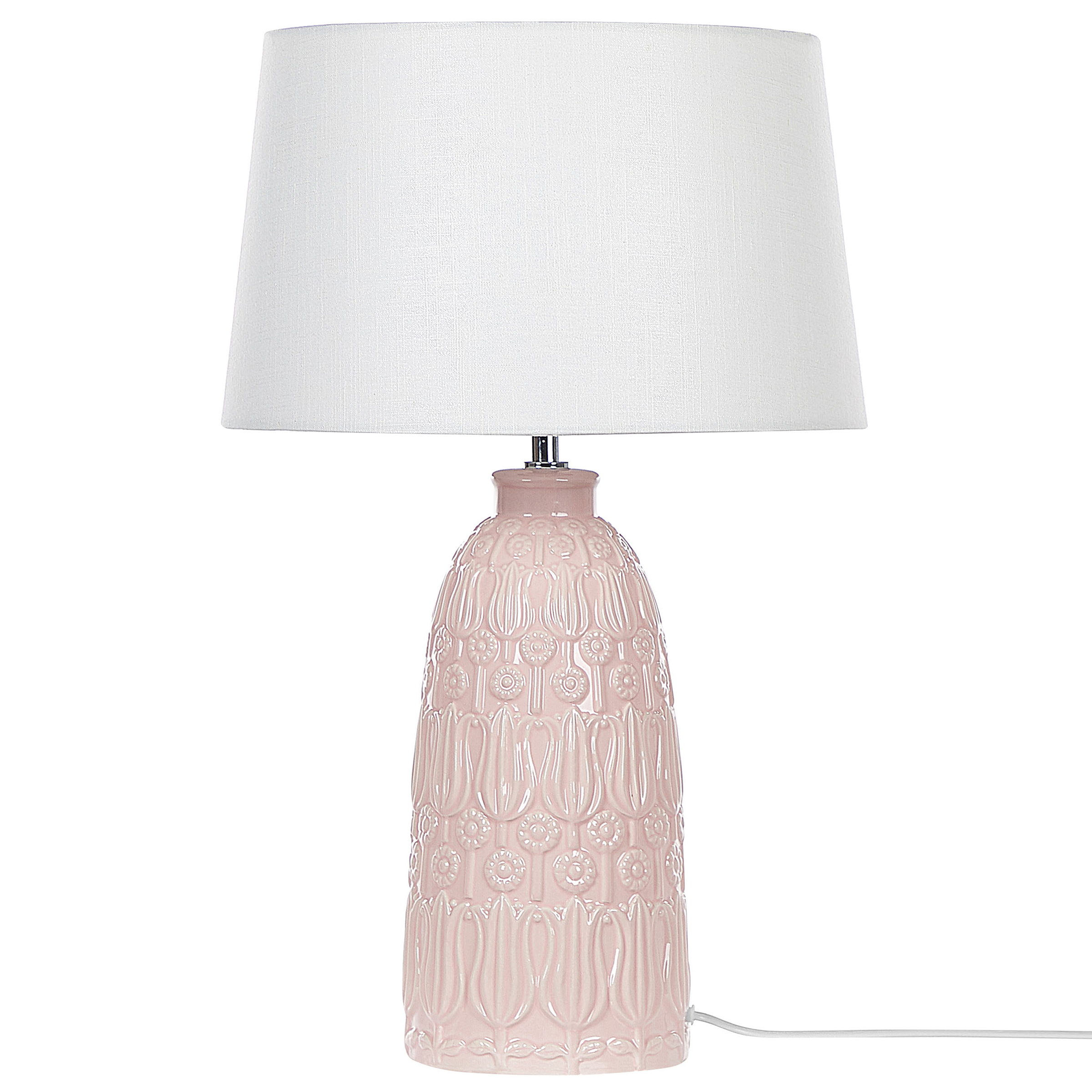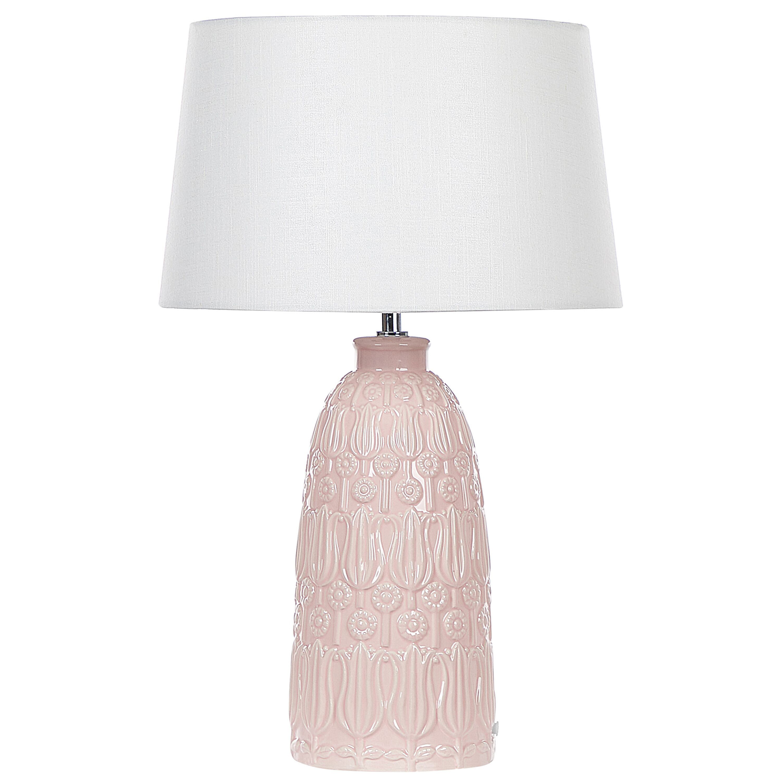 Boheemi valaisin kukkakaiverruksilla. Lisää kotiisi väriä tämän koristeellisen pöytävalaisimen avulla. Sen jalka on valmistettu kestävästä keramiikasta, jossa on kukkakaiverruksia. Tämän ansiosta valaisin sopii loistavasti mihin tahansa maalaismaiseen tai boho-tyyliseen sisustukseen. Sen vaaleanpunainen väri kerää varmasti katseita ja yhdessä valkoisen käsintehdyn varjostimen kanssa se muodostaa todella upean yhdistelmän.