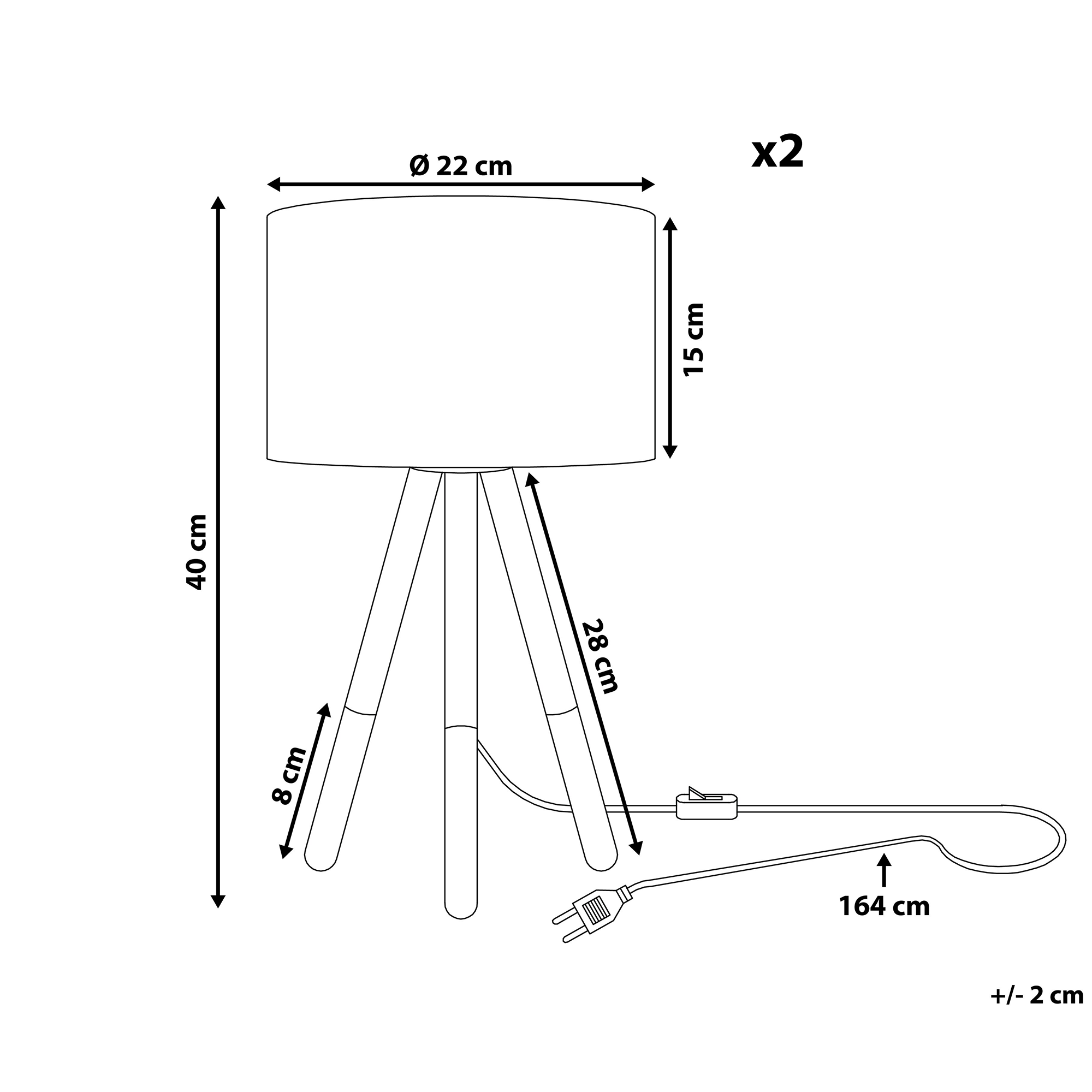 Moderni kolmijalkainen yöpöydän valaisinsetti. Yksinkertaisesti muotoillut pöytävalaisimet sopivat loistavasti sekä minimalistisiin että skandinaavisiin sisustuksiin. Kiinalaisesta saarnista valmistetut kolmijalkaiset rungot on viimeistelty luonnollisen värisillä yksityiskohdilla. Mustat, polypuuvillasta valmistetut sylinterivarjostimet valaisevat tilan kuin tilan lämpimällä valolla. Neutraalien väriensä ansiosta valaisimet sopivat loistavasti jokaiseen tilaan, aina makuuhuoneesta kotitoimistoon.