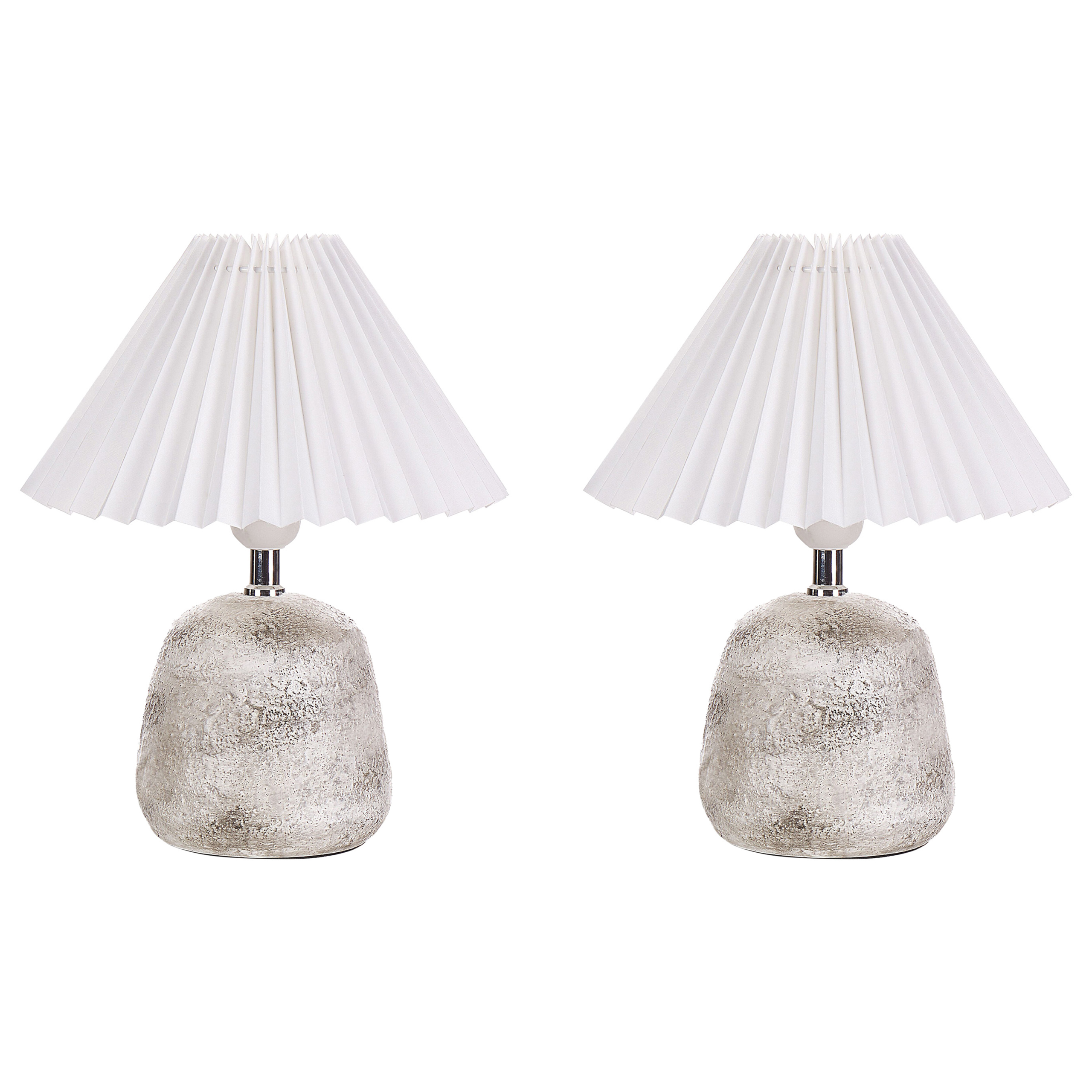 Moderni yöpöydän valaisinsetti. Tämä 2 keraamisen pöytävalaisimen setti sopii täydellisesti kodin intiimin ja viihtyisän tunnelman luomiseen. Se on suunniteltu raa'an näköisellä betoniefektillä, joka tuo siihen maalaismaista charmia, joten se sopii erinomaisesti yöpöydille tai eteiseen, joissa tarvitaan lisävaloa. Synteettisellä varjostimella täydennettynä se on tyylikäs valaistusratkaisu moderniin kotiin.