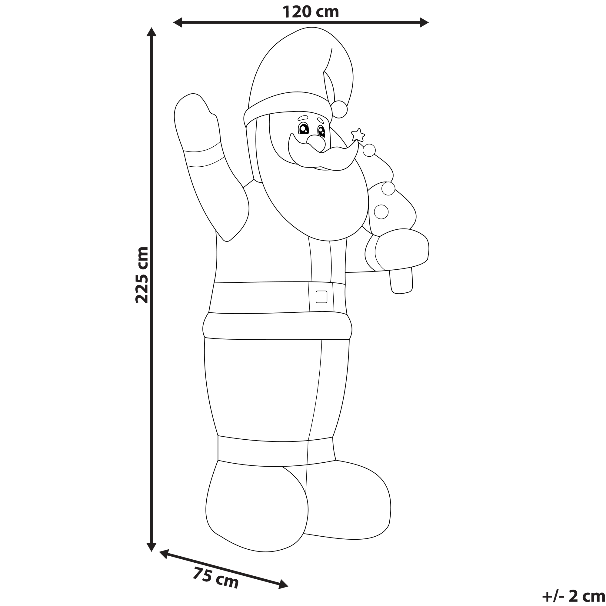 Puhallettava ulkokoriste LED-valo IVALO Joulupukki 225 cm Punainen