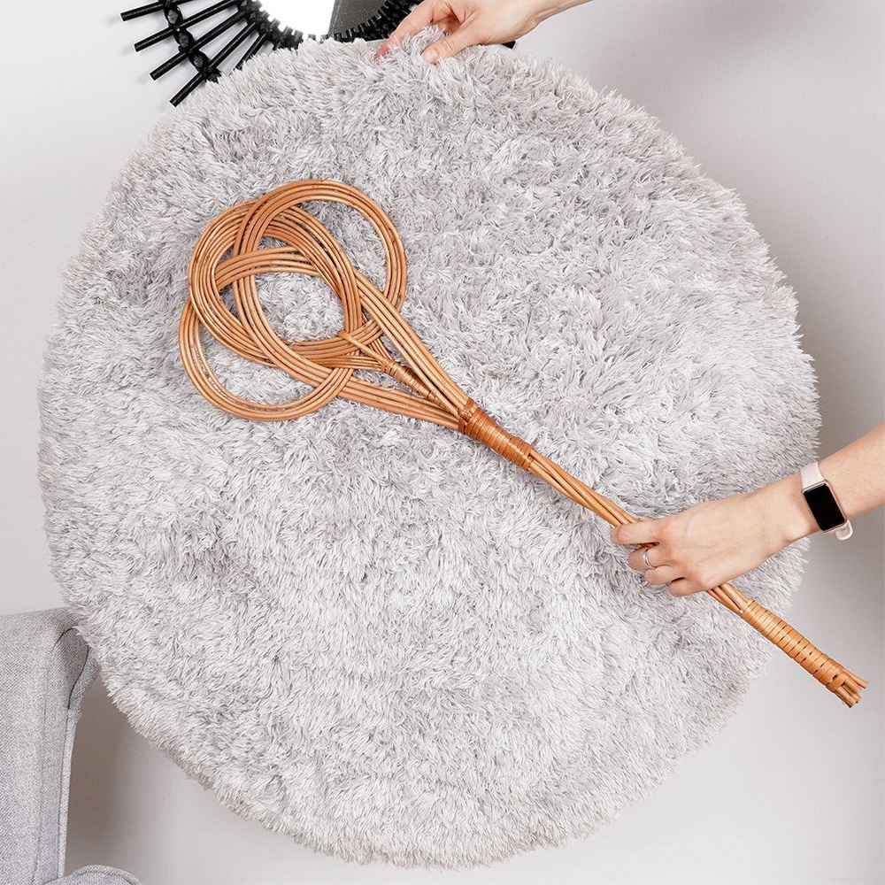 KÄYTÄNNÖLLINEN - Punottu vispilä matoille, kokolattiamatoille tai auton matoille. Hyödyllinen jokaisessa kodissa. Vispilän pituus on 75 cm.