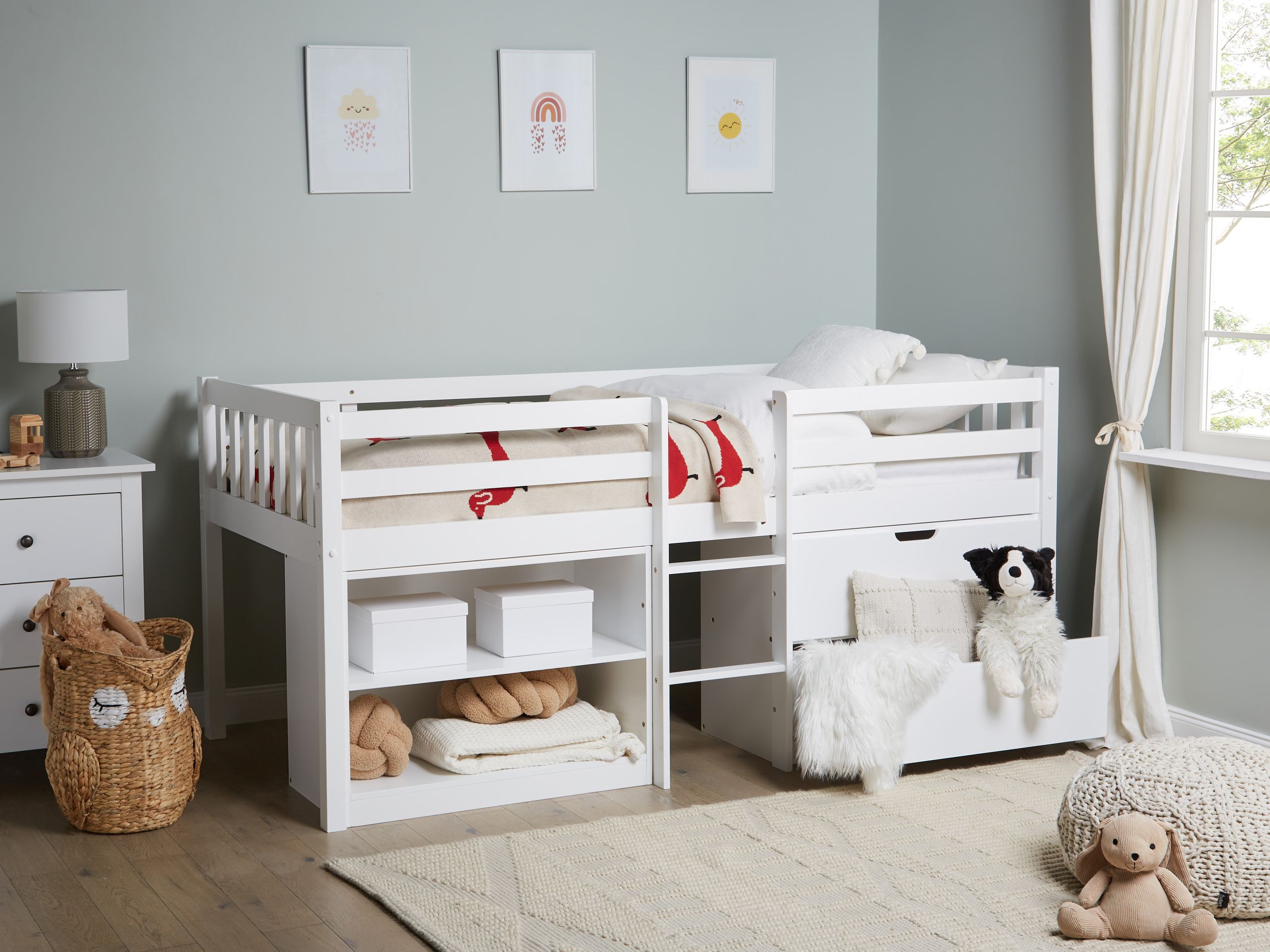 Ominaisuudet: Iskuja vaimentava sälepohja tarjoaa täydellisen tuen, Loistava lisä lastenhuoneeseen, Luo mukavan tunnelman, Tukeva runko, Täyttää EN 747-1 -sertifikaatin mukaiset tiukat turvallisuusstandardit, Valmistettu REACH-asetusten mukaisesti kemikaaliturvallisuutta varten, Runsaasti säilytystilaa