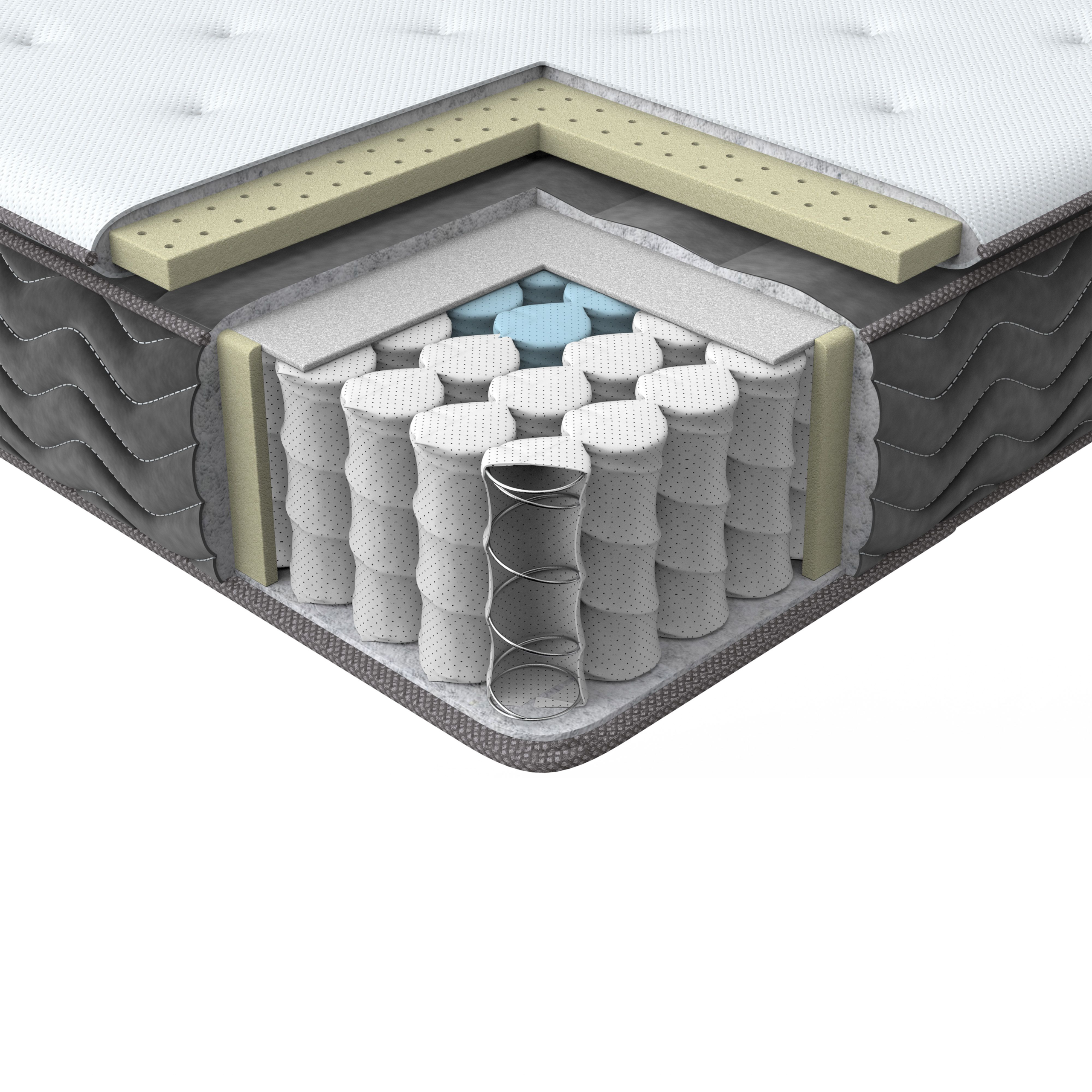 5-vyöhykkeinen hybridipatja. Tämä hybridipatja on valmistettu käyttämällä monikerroksista rakennetta, joka sisältää pussijousia, PU-vaahtoa ja lateksikerroksen – jokainen komponentti edistää tasapainoista tuen, mukavuuden ja joustavuuden yhdistelmää. Pussijousiydin takaa vakaan perustan mukautumalla kehon painepisteisiin, kun taas PU-vaahtotäyte tarjoaa lisäpehmustusta ja mukautuu hellävaraisesti vartalon luonnollisiin muotoihin. Lateksikerros parantaa kokonaismukavuutta entisestään edistämällä erinomaista ilmavirtausta, joka auttaa säätelemään lämpötilaa. Päällinen on valmistettu joustavasta polyesterikankaasta, mikä edistää sen pitkäaikaista kestävyyttä. Lisäksi se on hypoallergeeninen, joten se on käytännöllinen ja turvallinen valinta allergikoille.