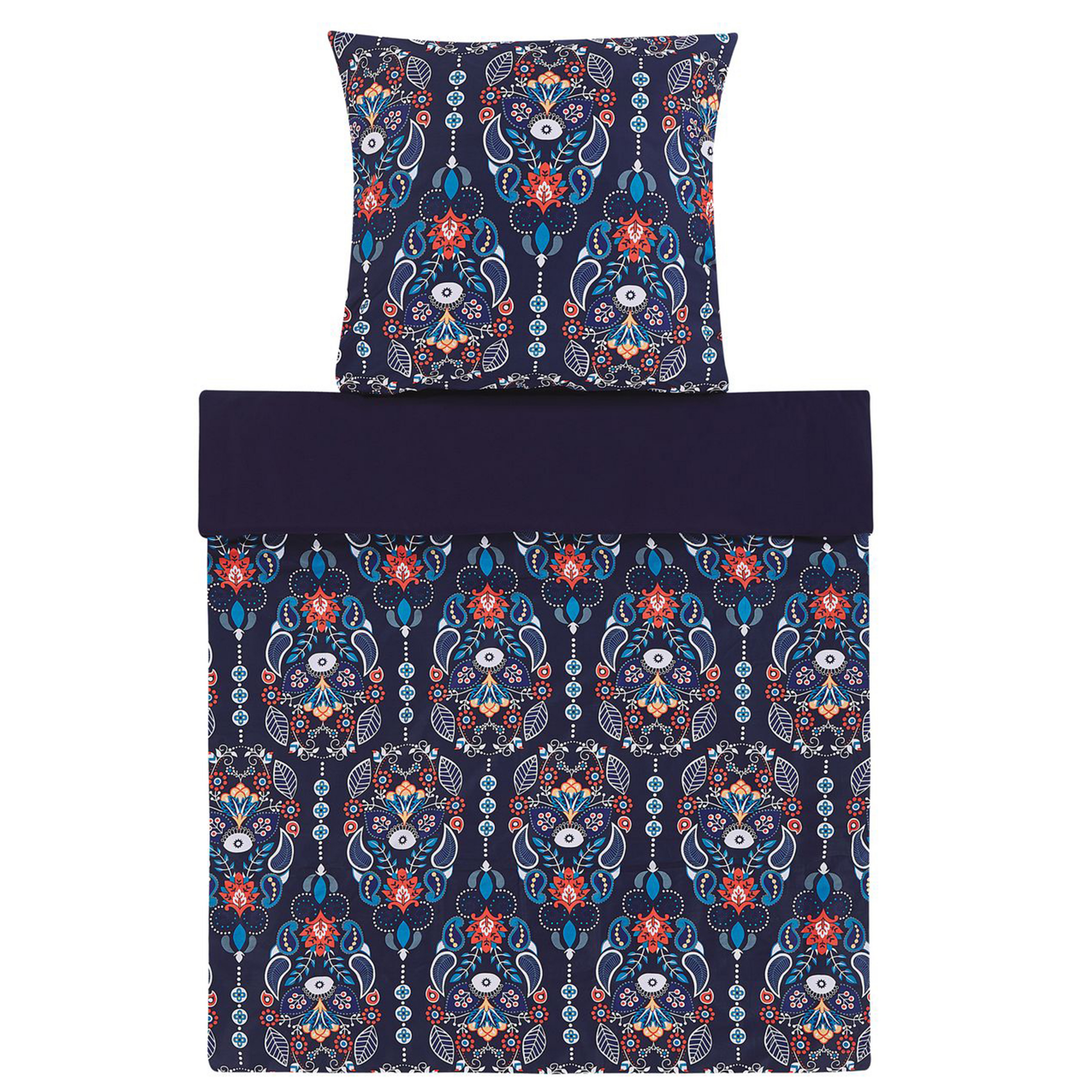 Tyylikäs vuodevaatesetti itämaisella kuvioinnilla. Kaipaatko lisää ylellisyyttä makuuhuoneeseesi? Uudista tilan ilmettä tällä ihanalla pussilakanasetillä. Materiaali on laadukasta puuvillaa, jossa on satiinin tuntua, joten se on miellyttävän tuntuinen iholla. Peitto pysyy hyvin pussilakanan sisällä nappikiinnityksen ansiosta.