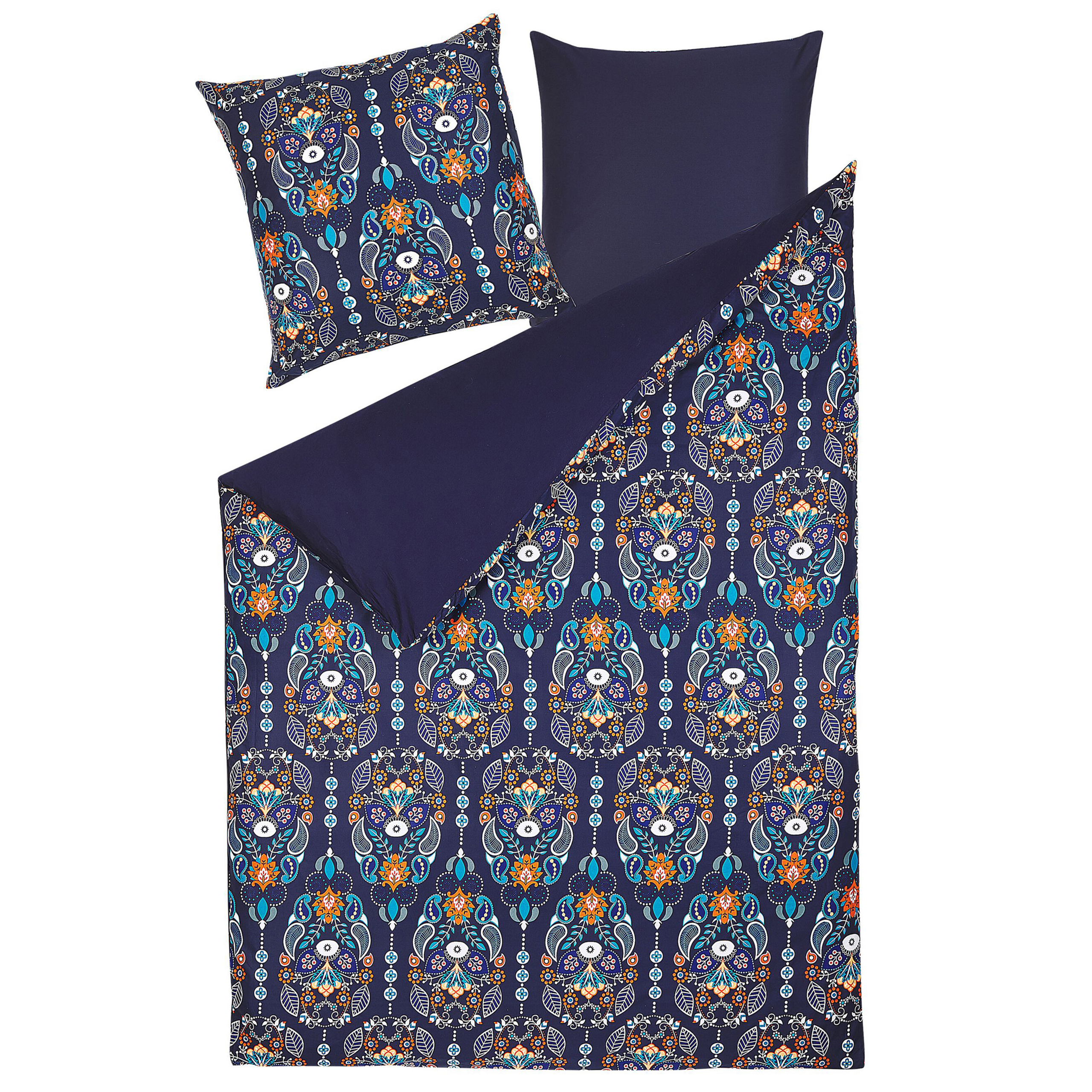 Tyylikäs vuodevaatesetti itämaisella kuvioinnilla. Kaipaatko lisää ylellisyyttä makuuhuoneeseesi? Uudista tilan ilmettä tällä ihanalla pussilakanasetillä. Materiaali on laadukasta puuvillaa, jossa on satiinin tuntua, joten se on miellyttävän tuntuinen iholla. Peitto pysyy hyvin pussilakanan sisällä nappikiinnityksen ansiosta.