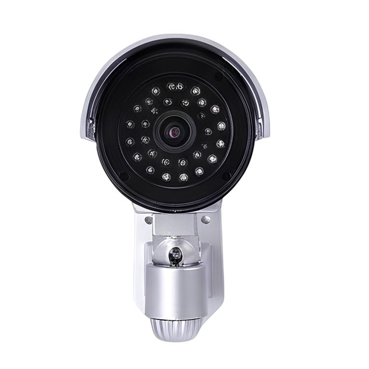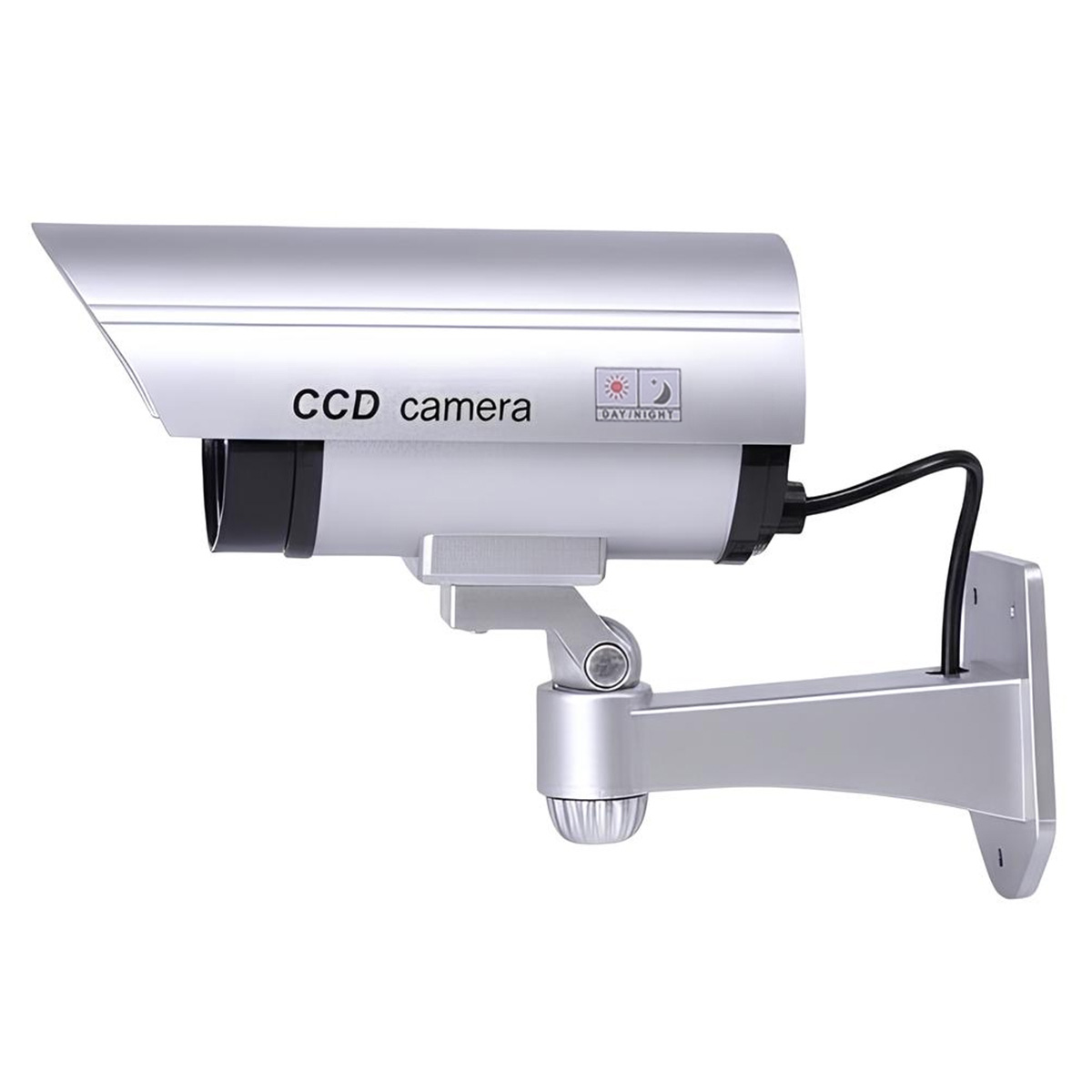 Pelotuskamera, jossa on realistinen hopeaputkimalli. Valvontakameran uskollinen jäljitelmä, jossa on sisäänrakennettu LED, joka lisää pelotetta. Ihanteellinen sisäänkäyntien, julkisivujen tai tilojen visuaaliseen turvaamiseen ilman varsinaista asennusta. Helppo seinäasennus. Soveltuu sisä- tai suojaisaan ulkokäyttöön, autotalleihin, myymälöihin tai pihatiloihin.
