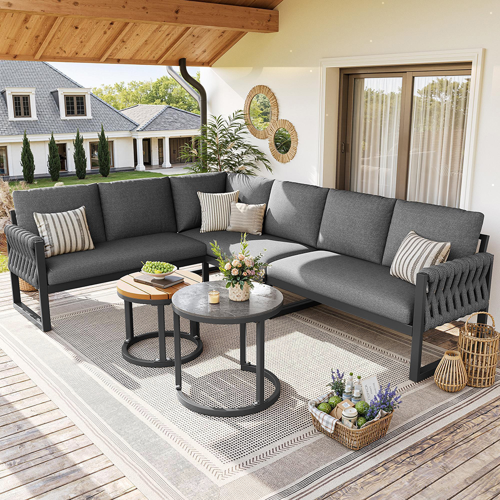 Tämä ulkokäyttöön tarkoitettu sohvaryhmä on vapaasti yhdisteltävissä ja järjestettävissä erilaisiin kokoonpanoihin (esim. L-muotoon, U-muotoon tai erillisiksi istuinryhmiksi) tilavaatimusten ja mieltymysten mukaan – täydellinen parvekkeelle, puutarhaan tai patiolle.