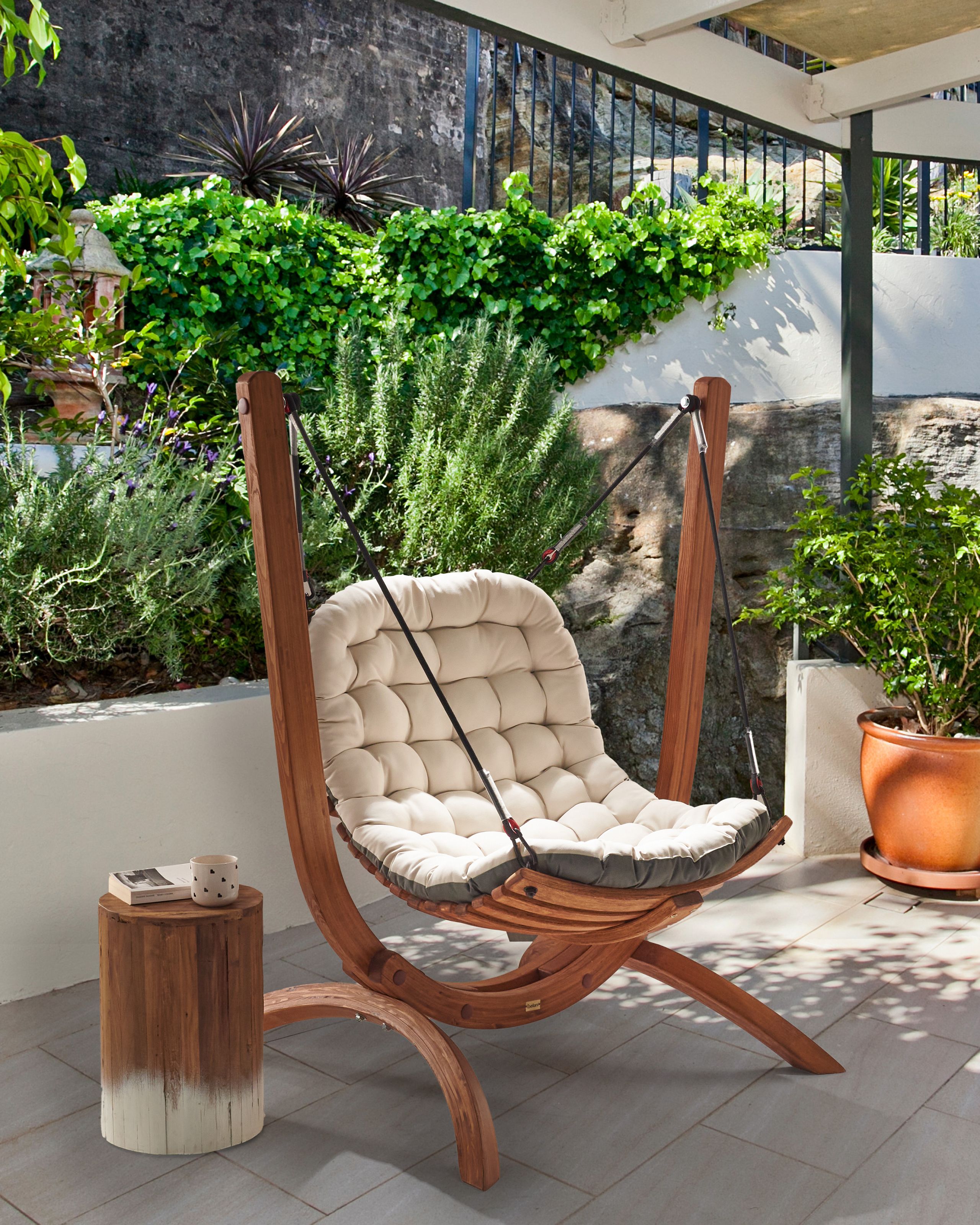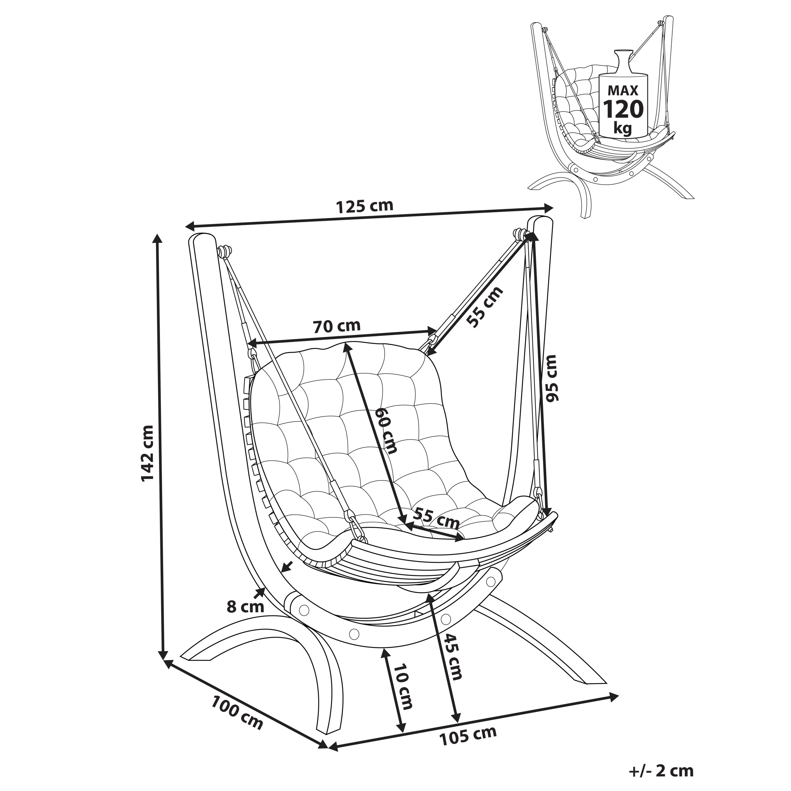 Rustiikkinen yhden hengen ulkokeinu tyynyllä. Nauti raikkaasta ulkoilmasta lepäämällä tässä mukavassa puutarhakeinussa. Kestävästä, lämpimän ruskean sävyisestä lehtikuusesta valmistettu keinu on UV-säteilyn kestävä, mikä takaa pitkäikäisyyden ja korkean laadun useiksi vuosiksi. Mukana tulee tyylikäs kaksivärinen tyyny vaaleanbeigenä ja harmaana. Se on valmistettu polyesterikankaasta, ja sen kumpaakin puolta koristaa kaunis tuftaus. Tyynyn ansiosta voit muuttaa ulkotilasi ilmettä hetkessä mielialasi tai sisustuksesi mukaan.